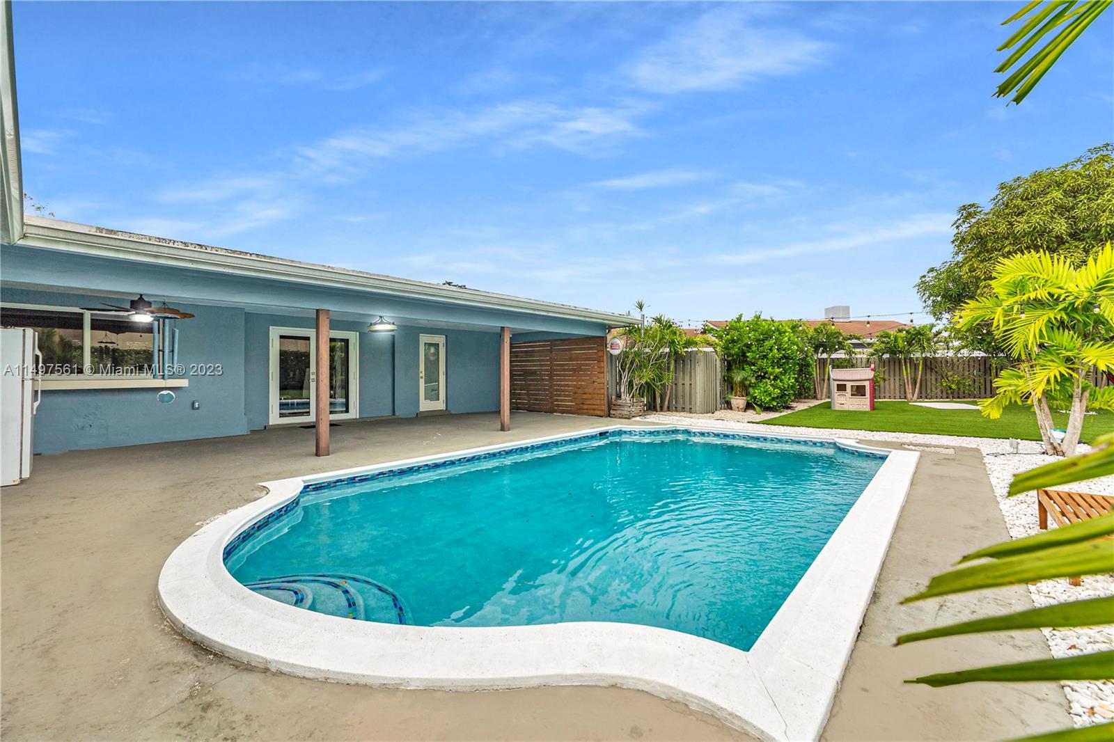 Welcome to this beautiful 4/2 home nestled in the non-HOA community of Plantation Park. Step inside to a modern kitchen, uniform tile flooring throughout and split floor plan. The main bedroom is positioned away from the other 3 rooms giving privacy. It has an en-suite bathroom + walk-in closet. The extra room is perfect for a home office. The property's significant lot size 15,000+ sqft ensures plenty outdoor space. The fenced backyard is a true gem, featuring a covered patio perfect for relaxation and hosting poolside gatherings with loved ones. Additional features: 2-car garage, newer paver circular driveway, roof 2019 for peace of mind. AC unit 2016. This property is not just a house; it's a lifestyle waiting for you to embrace. Don't miss the opportunity to make it your new home!