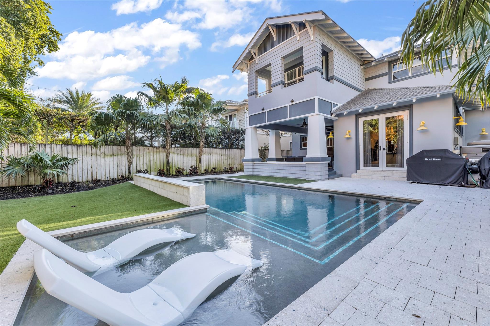 Experience the pinnacle of luxury living in the heart of Rio Vista, Ft. Lauderdale's Premier Enclave. This exquisite Craftsman home, built in 2013, is a masterpiece bathed in natural light, showcasing meticulous attention to detail. Sitting on a very quiet street deep in Rio Vista on a 7500 sft lot. The heart of the home, the fabulous chef's kitchen, is a culinary delight with soapstone countertops, high-end Miel & Wolf appliances, convenient island bar and concrete flooring. Indulge in the sumptuous master suite, a true haven of relaxation, featuring a fireplace and a balcony overlooking the pool area. Each additional bedroom is generously appointed, ensuring privacy and luxury for all. A large rec. room on the second floor adds for flexibility to be an extra bedroom or gym.