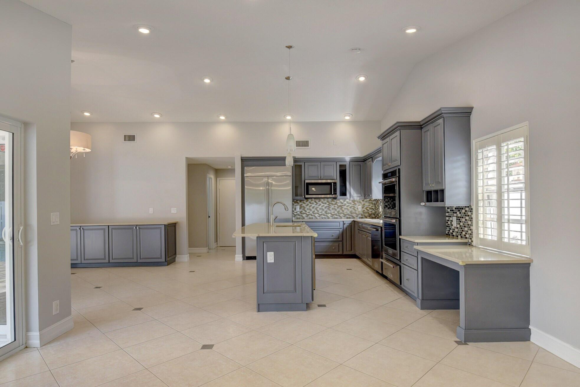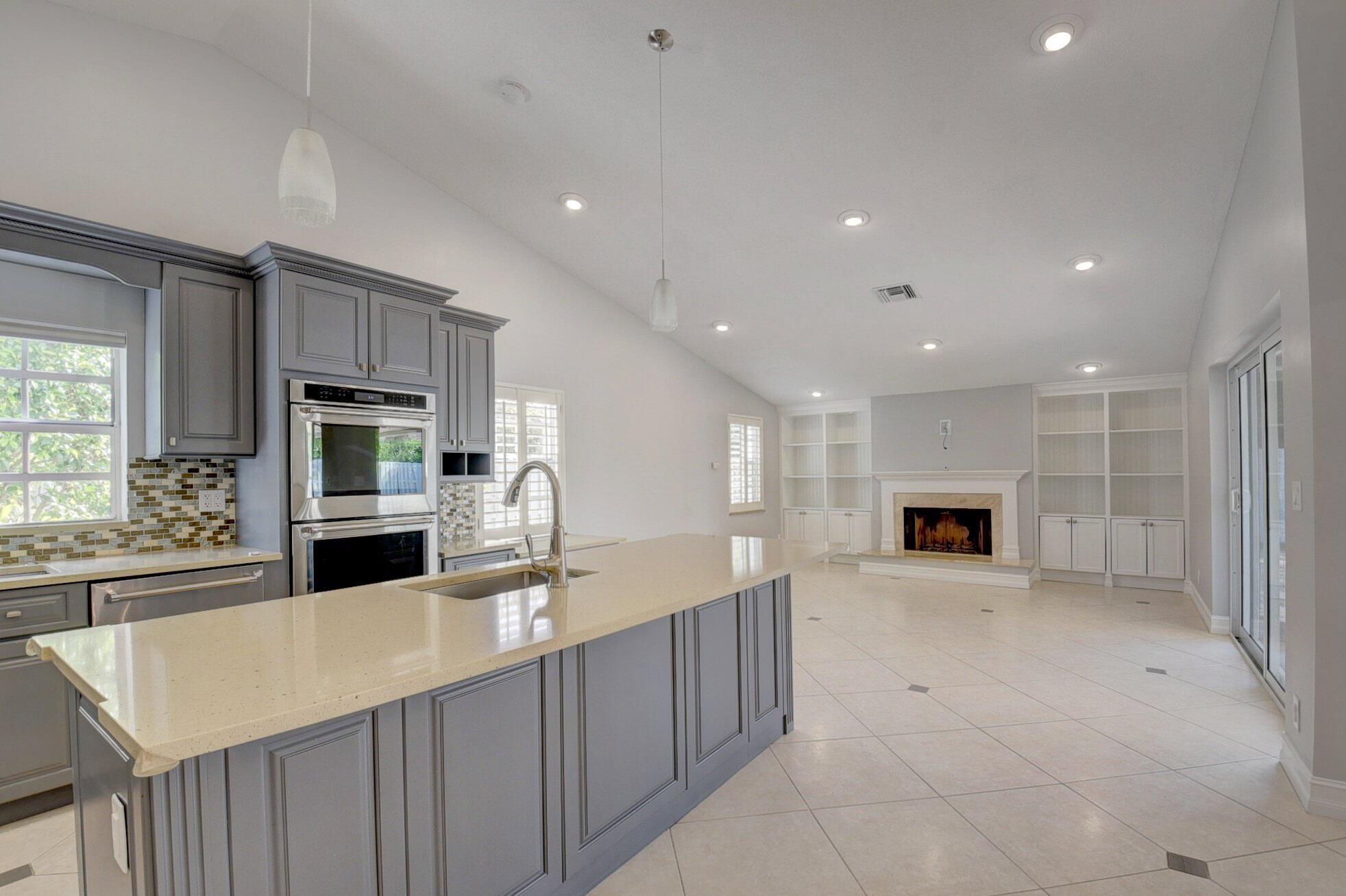 Elegant & updated 4-bedroom oasis in one of Boca Raton's most desirable neighborhoods! This single-story beauty with a circular driveway, boasts volume ceilings, a custom library with a wood-burning fireplace, a chef's kitchen featuring double ovens & a warming drawer, wine refrigerator, and a convenient snack bar and breakfast area. All bedrooms feature closet built-ins. Luxurious primary suite and bathroom features a soaking tub, frameless shower & accesses a private fenced-in pool with travertine tile & outdoor shower. Separate laundry room with front loading machines. Impact sliders & windows too! Beyond the property, New Floresta is a perfectly located neighborhood near Town Center Mall, dining, parks, FAU, 95 and the turnpike. This is an absolute must-see as your dream home awaits!