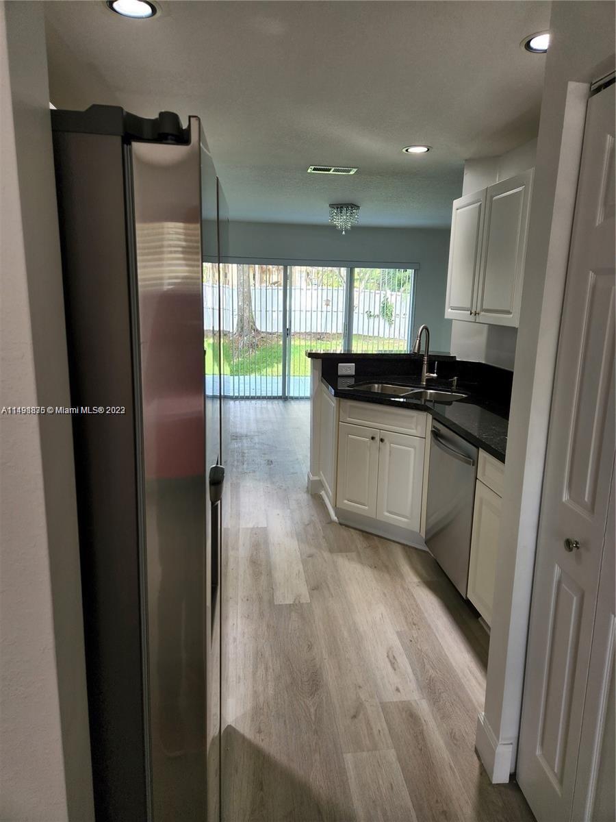 Beautiful 3/2.5 Townhouse within a gorgeous, private community with LOW FEES. As a corner unit, this home has an OVERSIZE BACKYARD which can be fenced in, perfect for entertaining & for your kids and pets, plus a PRIVATE GARAGE & DRIVEWAY. The unit has been REMODELLED RECENTLY with new floors, stainless-steel appliances, lights, washer & dryer, and more. The layout is spacious & functional. Plenty of storage. Rooms have walk-in closets. Laundry room on the 2nd floor. Community has a swimming pool, tree-lined sidwalks, and more. School, restaurants and shops walking distance. Also, the ROOF, the WASHER AND DRYER, the FLOORS, and the APPLIANCES are relatively NEW. Hurricane shutters are also provided.