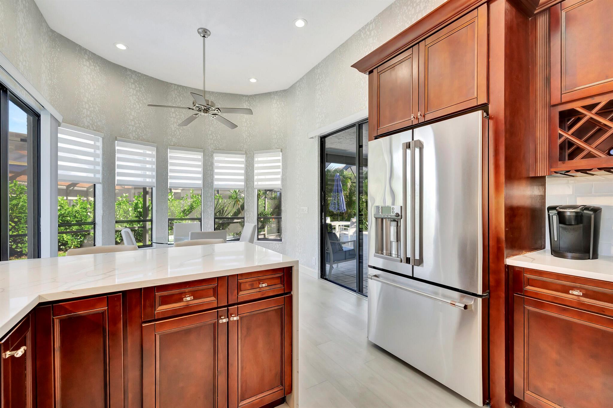 SALE PRICED! Lowest priced home available! Recent price reduction. The Cove of Stonebridge Country Club offers a boutique array of cul de sac streets .. charming single family homes with their unique personalities. This home has been updated in many areas so far.. Your first impressions upon entering are enjoying the high end luxury vinyl flooring throughout the main living area, open and bright lay out with 3 spacious bedrooms PLUS a den/office. Along with 3 and a half baths..The primary bedroom has two completely separate bathrooms, one can double as a cabin bath. Lots of details to share: let's start with curb appeal along with a generous yard to explore your landscaping talents. Partial golf view, very private screened pool and patio area with a landscaped privacy hedge.
