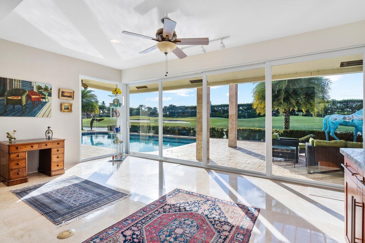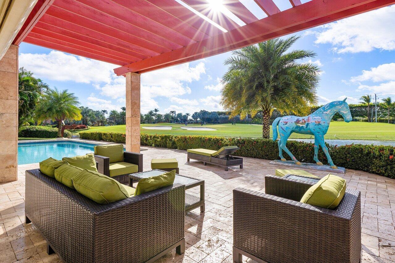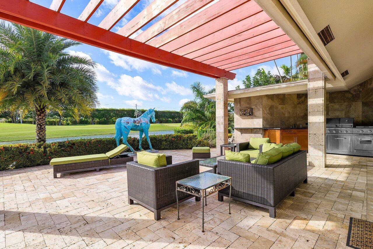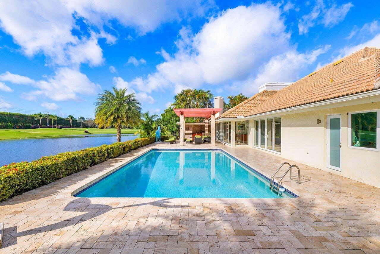 Spectacular location in St Andrew's CC! Sunny, southern facing views from this home overlook a par 5 golf fairway and an expansive lake. Situated on a cul-de-sac, this 3567 liv sq ft home features 3 ensuite bedrooms plus office and the spacious primary suite has 2 bathrooms and closets. The open floor plan is bright all day with natural light and the views of the water and golf course rival any in the community. This home has no steps, a full house generator (2021), and nearly all impact glass. A large pool anchors the outdoor entertaining space, which includes an outdoor sitting area under a pergola, and a summer kitchen with built-in BBQ. The home is only minutes from the SACC clubhouse and all amenities, so the resort lifestyle of SACC is a quick golf cart ride or short walk away!