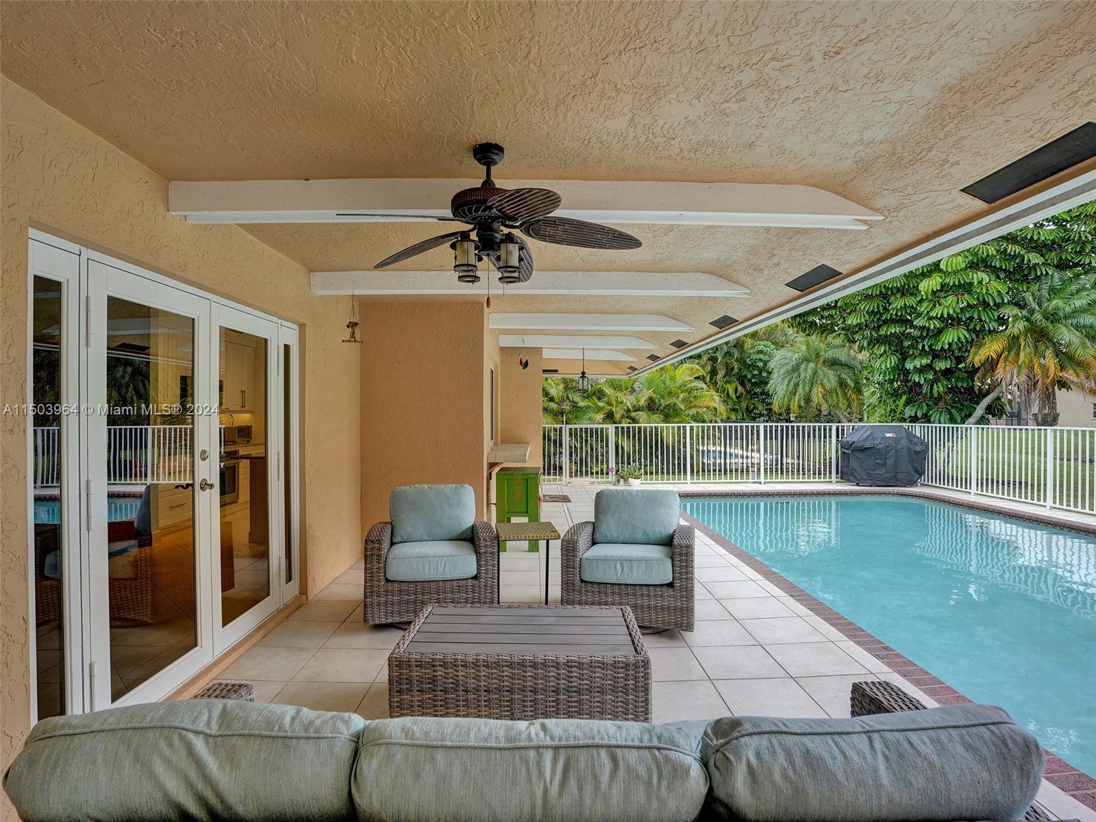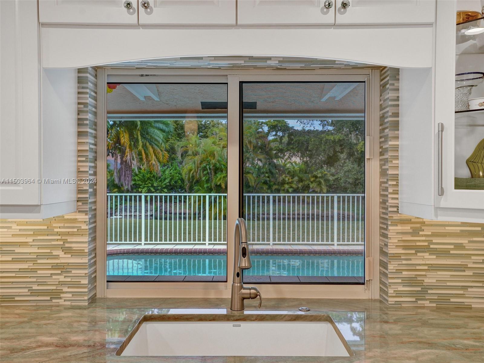 Peaceful waterfront location! Seller is a general contractor so quality abounds in this home! $8,000 high tech garage! Designer kitchen with accommodating pull-outs, soft close and hidden storage such as spice racks on both sides of the microwave. Plugs under the cabinets and indirect tube lighting under the cabinets. Wine Fridge with plentiful storage next to it. Attractive tile backsplash. Beautiful pendant lighting accents! Tiled floors compliment w/ wood in most bedrooms. Murphy bed included in one of the guest rooms. Dual cabana bathrooms that are both remodeled bathrooms as well! The guest bath has cut-outs in the shower/bath. All windows and doors are impact except the breakfast planter window. Tile on the patio with a fenced pool! This prime location could be yours!