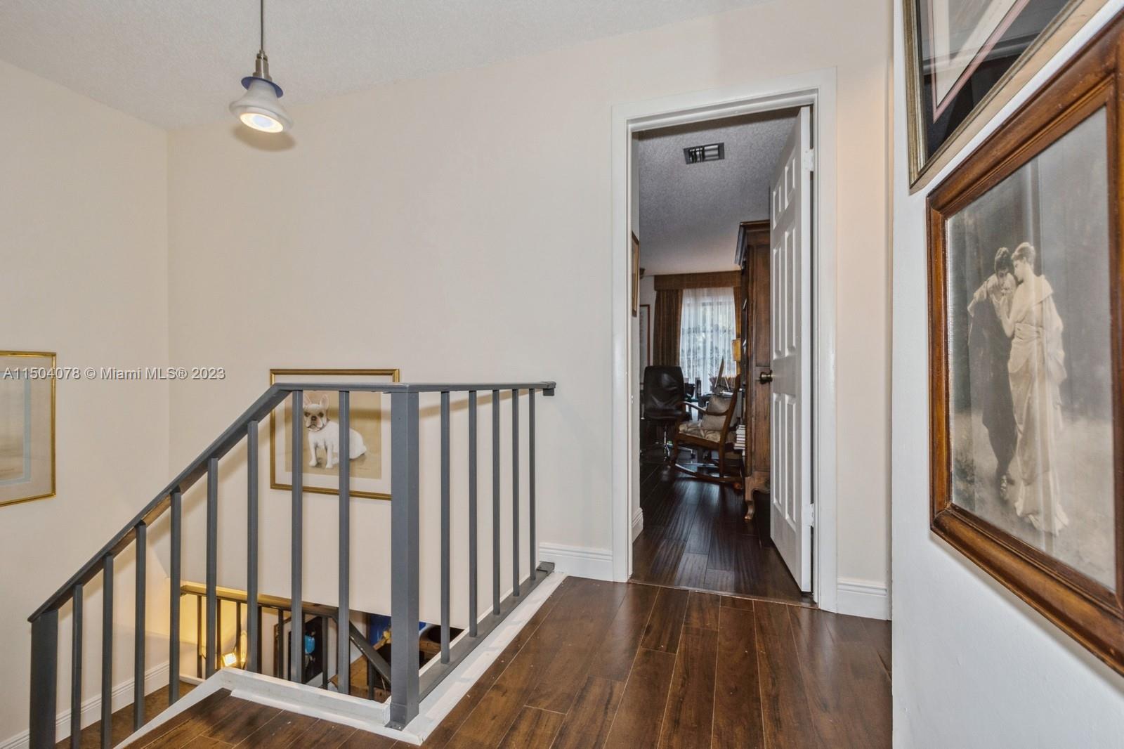 Gracious 3/2.5 townhouse located on a small court of (9) units in The Family Townhouses of the Lakes of Emerald Hills. Downstairs has an entry foyer, spacious living/dining room, open family room/kitchen updated with granite counter tops and stainless appliances, renovated powder room, large front patio/garden, and a large back patio leading to a treed green-space. Second floor has a large primary bedroom with updated ensuite (granite/glass, & linen closet), large walk-in closet, and open balcony, a central foyer with large closet, two amply sized guest bedrooms with large closets, and a renovated full bathroom. No carpet, tile and laminate on all floors. There are two deeded parking spots directly in front of the unit and ample guest parking.