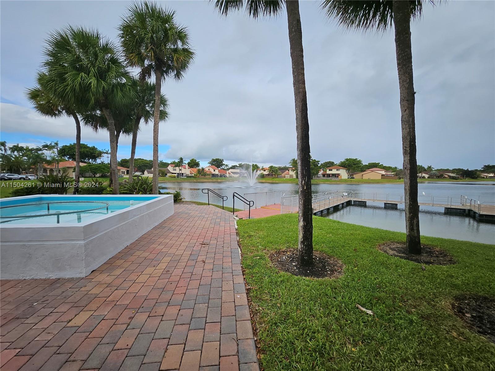 enjoy this peaceful lake front view in quiet neighborhood , featuring 2 bedrooms , 2 baths, hurricane shutters, garage and extra parking, community pool, tennis courts, gym, gated community. one parking space garage available and 2 extra carport spaces in front of the house.