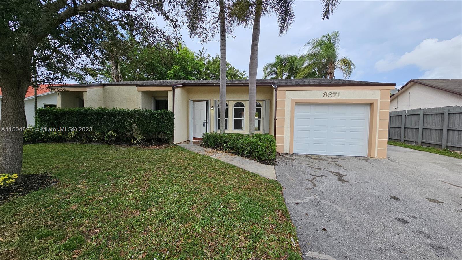 Awesome single family residence in Pembroke Pines! 3 bedrooms and 2 baths. Spacious living areas with vaulted ceilings. Tastefully updated throughout. Newer kitchen cabinets, granite counters and appliances. Newly installed roof in 2023. New garage door. Large outdoor patio ideal for entertaining. Separate utility shed that can be used as a work shop or an office. Large back yard with plenty of room for a custom swimming pool. Generous side entrance access with ample space for parking a large RV or boat. No HOA! Completely fenced. Centrally located in a quite and fully established neighborhood.