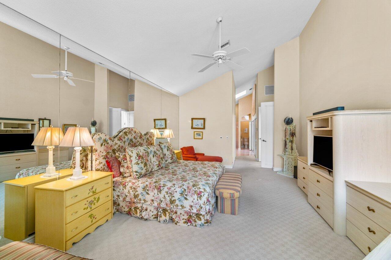 This charming home is situated in the highly desired section of Steeplechase, with great walkability to The Polo Club Clubhouse. Upon entering through the double-door entrance you are impressed by the sun-drenched soaring ceiling heights. The open concept of the living and dining room offers a perfect entertaining space that includes a seated wet bar for gathering. Discover the spacious eat-in kitchen overlooking the serene back patio and pool area. The primary bedroom suite is a retreat on its own, featuring two bathrooms, one with a separate tub and dual sinks and the other also offering the added benefit as a cabana bath. Leading down the hall past the open den area, you discover an oversized en-suite guest bedroom. Outdoors is a sunny private patio with a nice sized pool for relaxatio