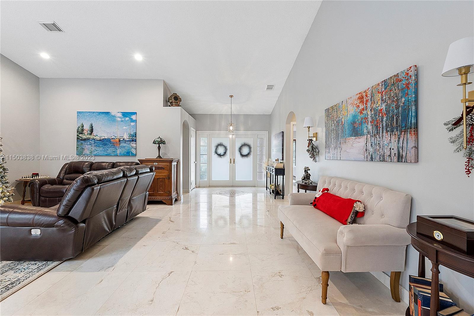BRAND NEW ROOF (Waiting On Tiles) Totally Updated Large 3 Bedroom 2 Bath Pool Home W/ Two Car Garage Located In Prestigious Gated Estancia Pembroke Pines. This Home Features: New A/C, Pool Pump, Resurfaced Pool, Full Accordion Shutters & Impact Doors. Tile Floors. Volume Ceilings W/ Recessed Lighting. Custom Kitchen W/ Stainless Steel Appliances, Granite Counters W/ Island. Large Primary Suite W/ Walk-In Closet Overlooks The Pool Area. En-Suite Bathroom Has Dual Sink, Bidet, W/ Separate Tub & Shower. Separate Living Room, Family Room & Formal Dining. PVC Fence, Square D Panel, Recently Painted Interior & Exterior, New Sprinkler Pump. New W/D. New Ceiling Fans. Low HOA Includes Resort Style Amenities, Olympic Pool, New Gym, Basketball Court. Close to Highways, Parks, A Schools. A Must See!
