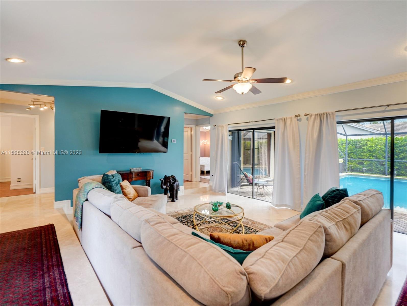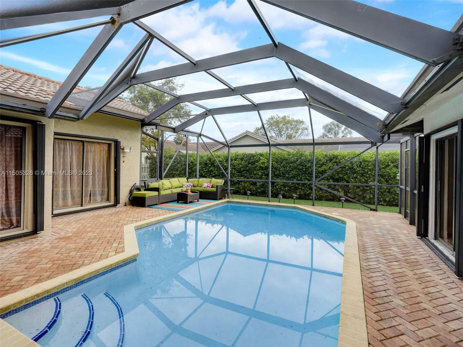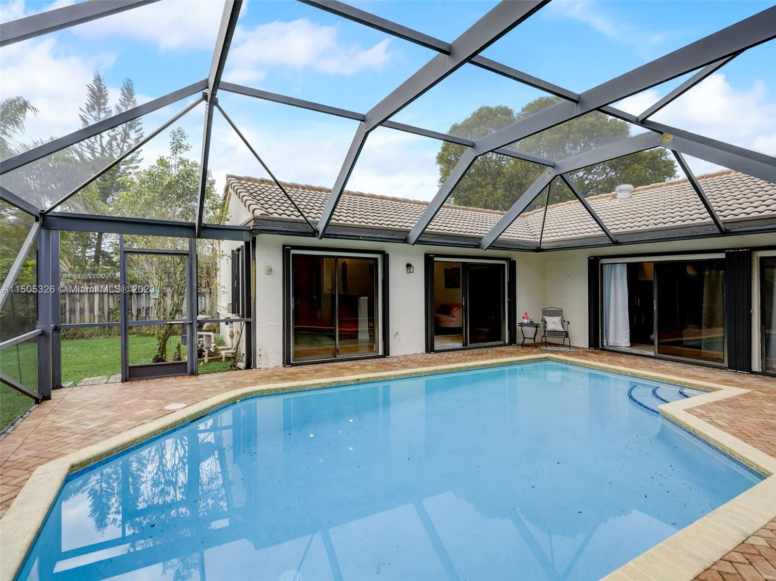 Updated 4/2 pool home zoned for top rated schools. Low HOA & several parks nearby. Updated kitchen w/granite counters, ss appliances, & soft-close KraftMaid cabinets. Formal dining features built-in cabinetry. Crown molding throughout. Primary features new luxe vinyl flooring, walk-in closet, & separate shower. Secondary bedrooms feature large closets & hardwood floors. Common areas feature 24x24 Crema Marfil marble tile. Access to the pool from 3 sides via sliding glass doors resulting in beautiful natural light throughout. A/C 2023. Accordion shutters 2018. Pool resurfaced & new pool pump 2018. Solar panels heat the pool for perfect temp year-round. Located minutes from premium shopping & restaurants incl The Promenade & Coral Square. Easy access to both the Sawgrass Expwy & FL Turnpike.