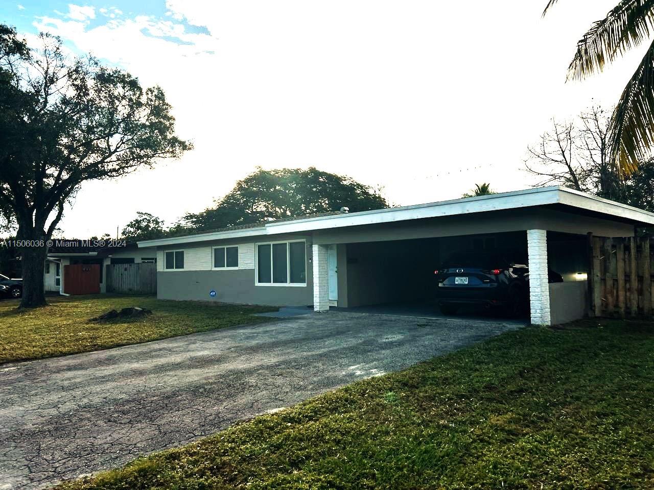 5 bedrooms 2 bathrooms w/large 2 car carport, impact windows and doors, kitchen w/granite counter tops, 3 years old Central A/C "Ice Cold" and new duct work, large interior utility/laundry room could easily be a home office. Shingle roof 3 years old and flat roof w/50 year warranty transferable per owners, large/open backyard w/plenty of room for pool & patio, wood flooring throughout. No HOA fees, central plantation location, close to schools. Minutes to Downtown Ft Lauderdale & Las Olas Nightlife.