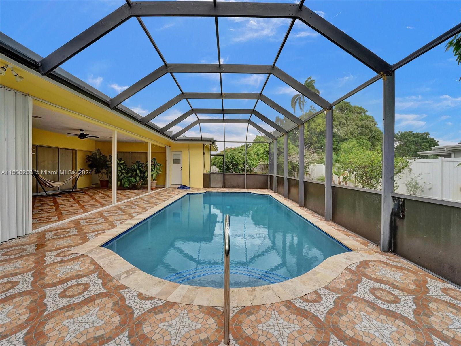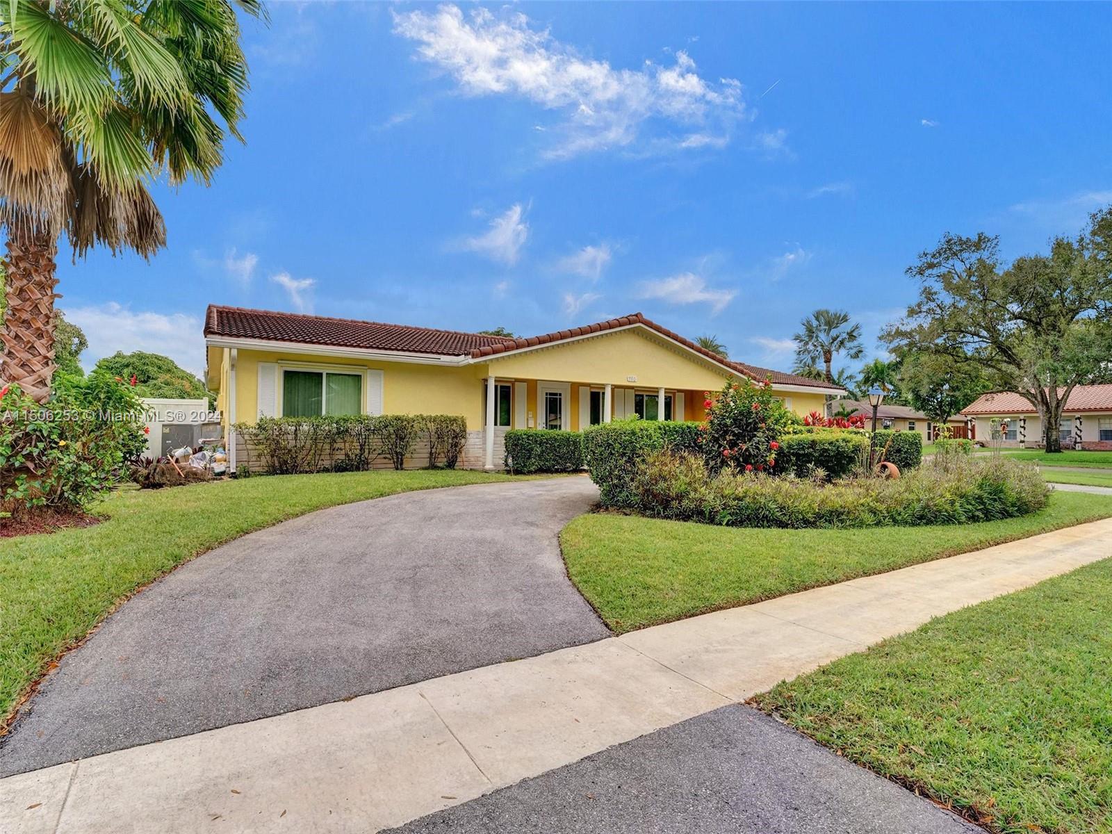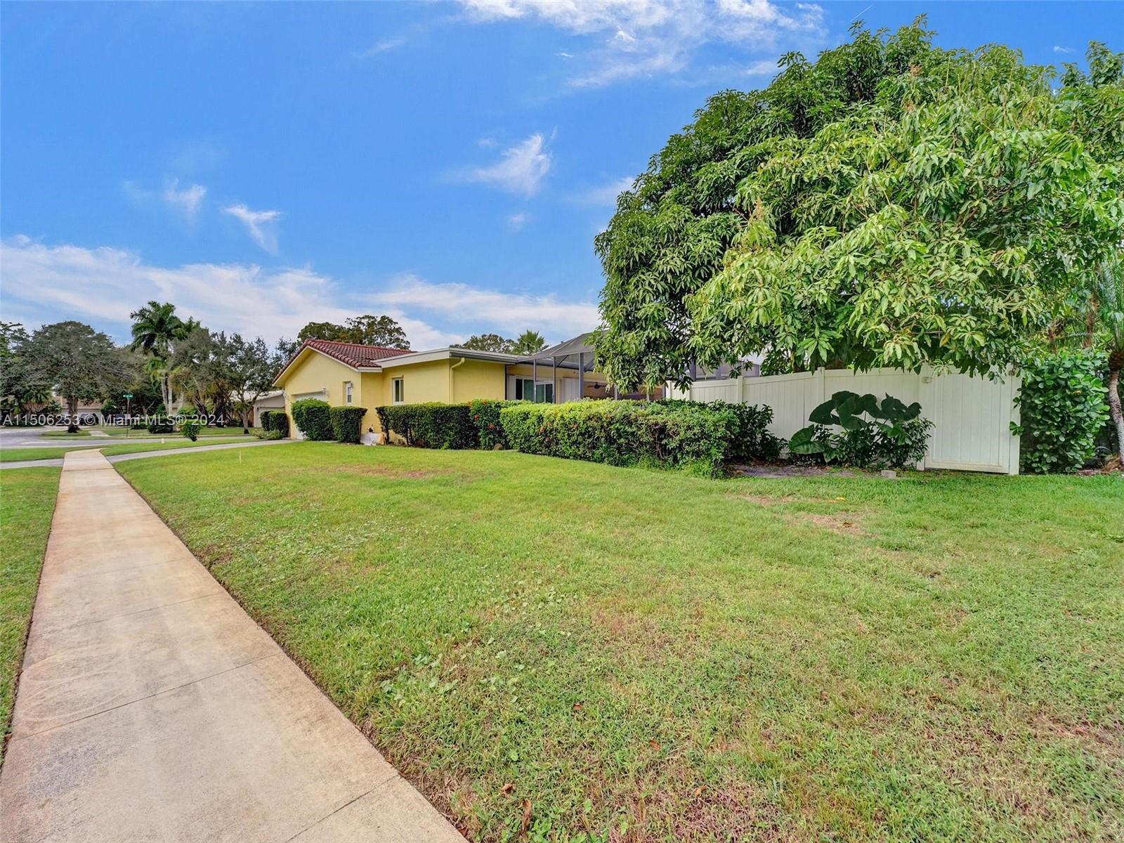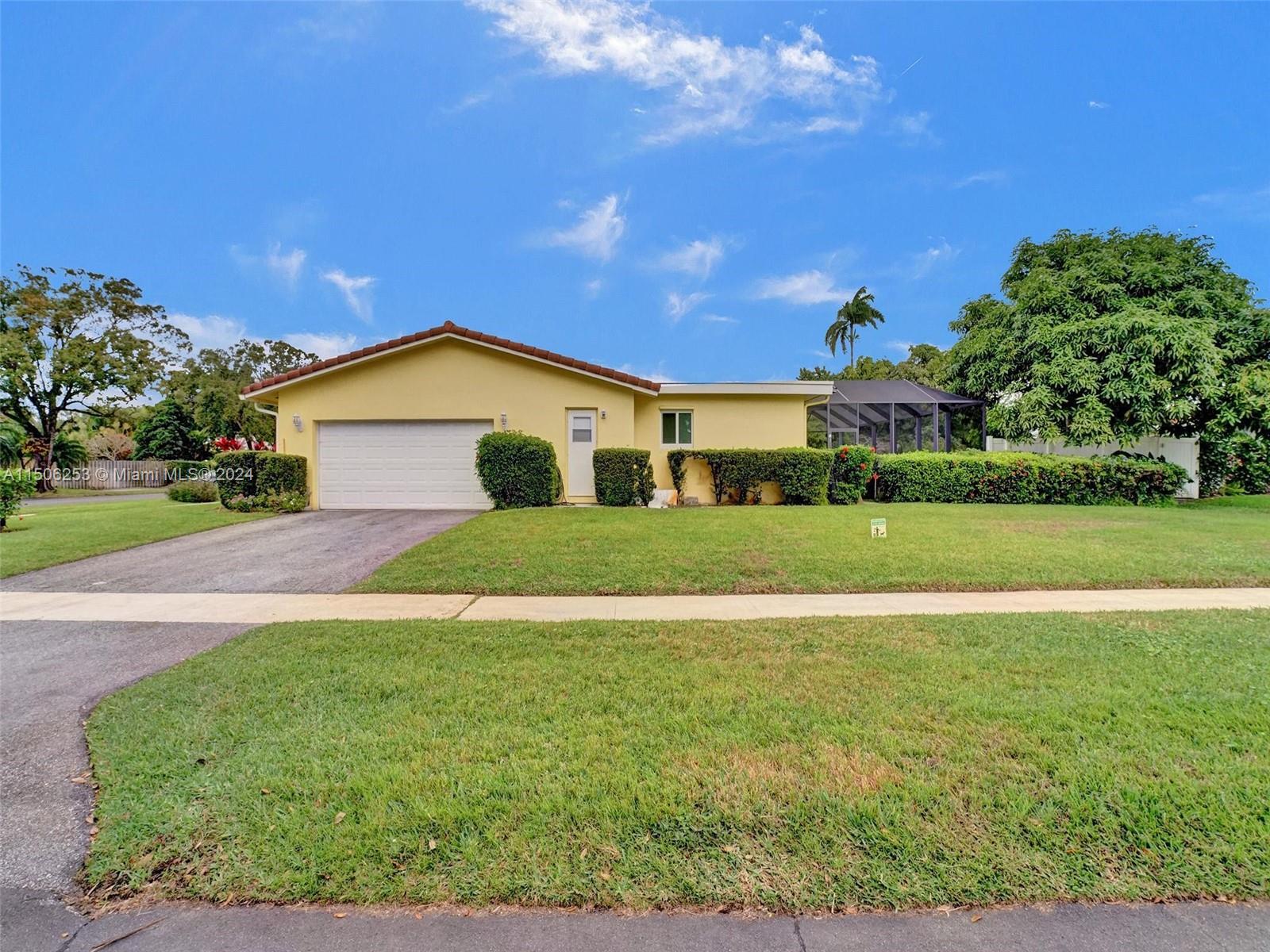 PRICE REDUCTION!!Welcome home to Plantation Park! This majestic 3/3 home is situated on a corner lot and provides a front circular driveway along with the side driveway to the 2-car garage. The large screened in pool area is ideal for entertaining guests. The lush backyard provides peace and tranquility and offers mangoes, banana trees and seasonal fruit trees. The guest bathroom located just off the family room and kitchen area is a full bathroom! The laundry room is huge and has a side door to outside. Flat roof was done in 2021 and A/C is 5 years old; Sprinkler system was replaced in 2021; The pool pump is 3 years old; The water heater is brand new 2023. Home is close to great schools, shopping, and all major roadways making commute a breeze. No pesky HOA to worry about!
