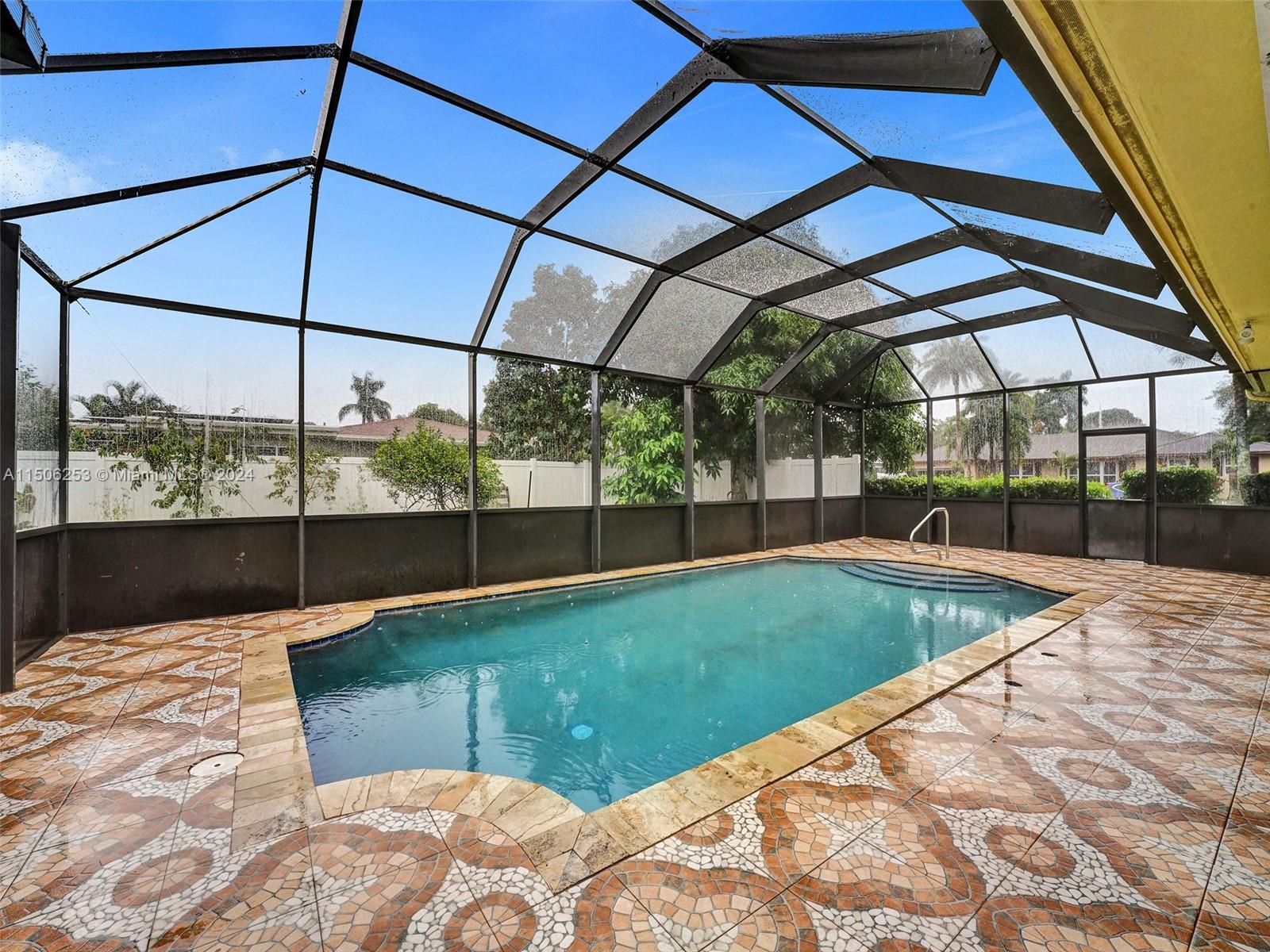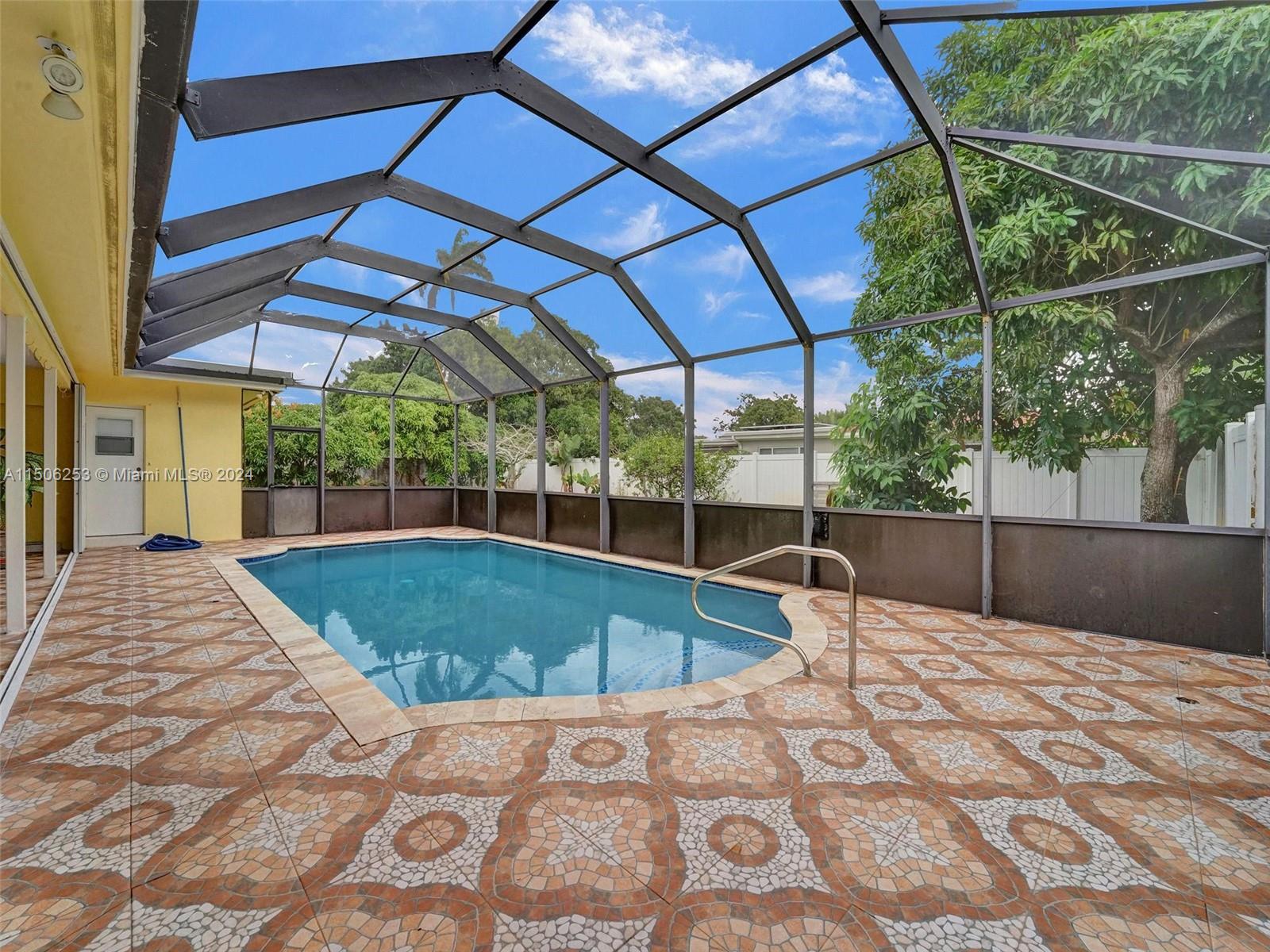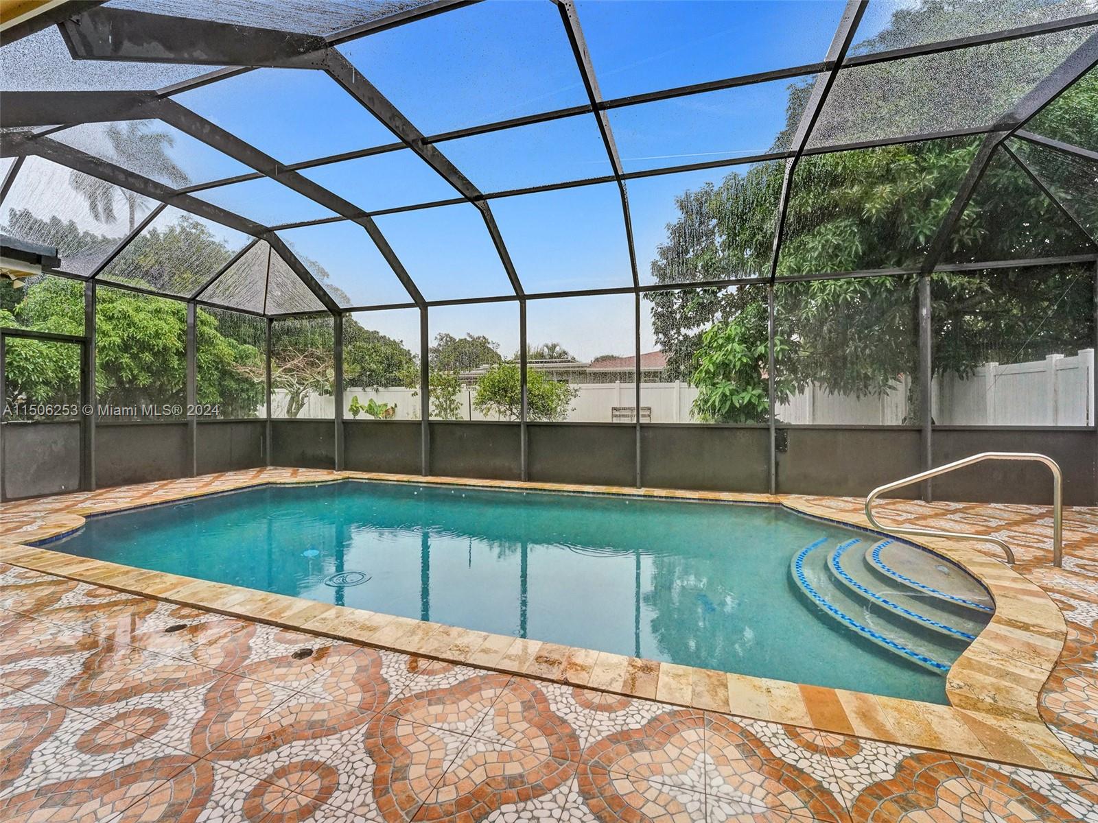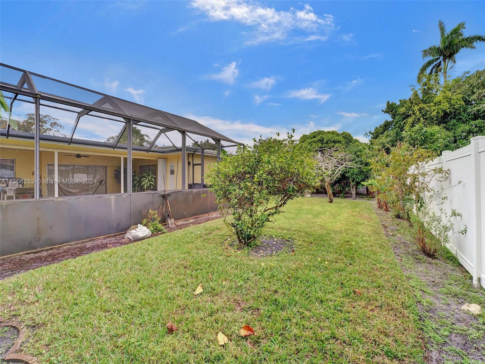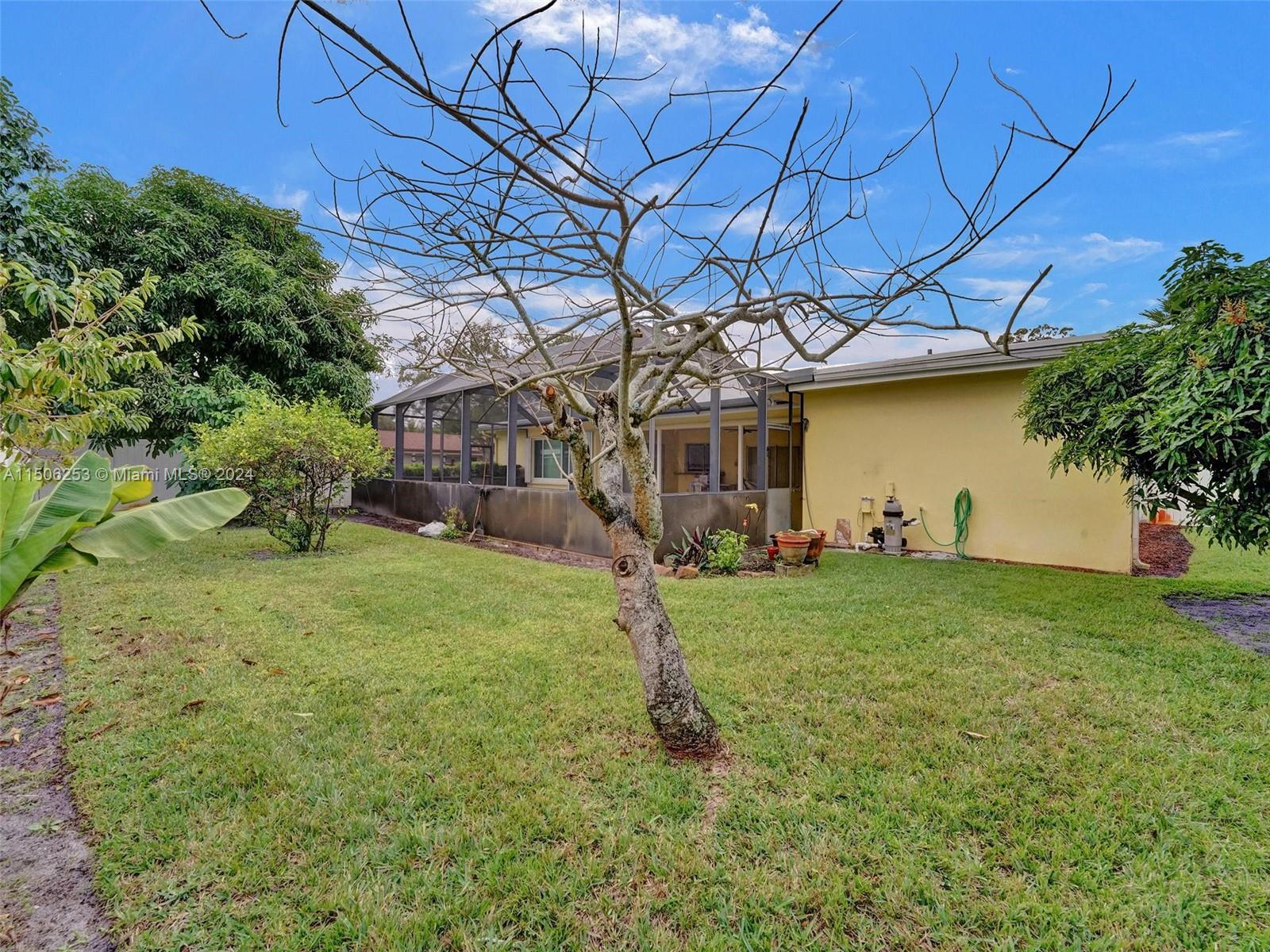 PRICE REDUCTION!!Welcome home to Plantation Park! This majestic 3/3 home is situated on a corner lot and provides a front circular driveway along with the side driveway to the 2-car garage. The large screened in pool area is ideal for entertaining guests. The lush backyard provides peace and tranquility and offers mangoes, banana trees and seasonal fruit trees. The guest bathroom located just off the family room and kitchen area is a full bathroom! The laundry room is huge and has a side door to outside. Flat roof was done in 2021 and A/C is 5 years old; Sprinkler system was replaced in 2021; The pool pump is 3 years old; The water heater is brand new 2023. Home is close to great schools, shopping, and all major roadways making commute a breeze. No pesky HOA to worry about!