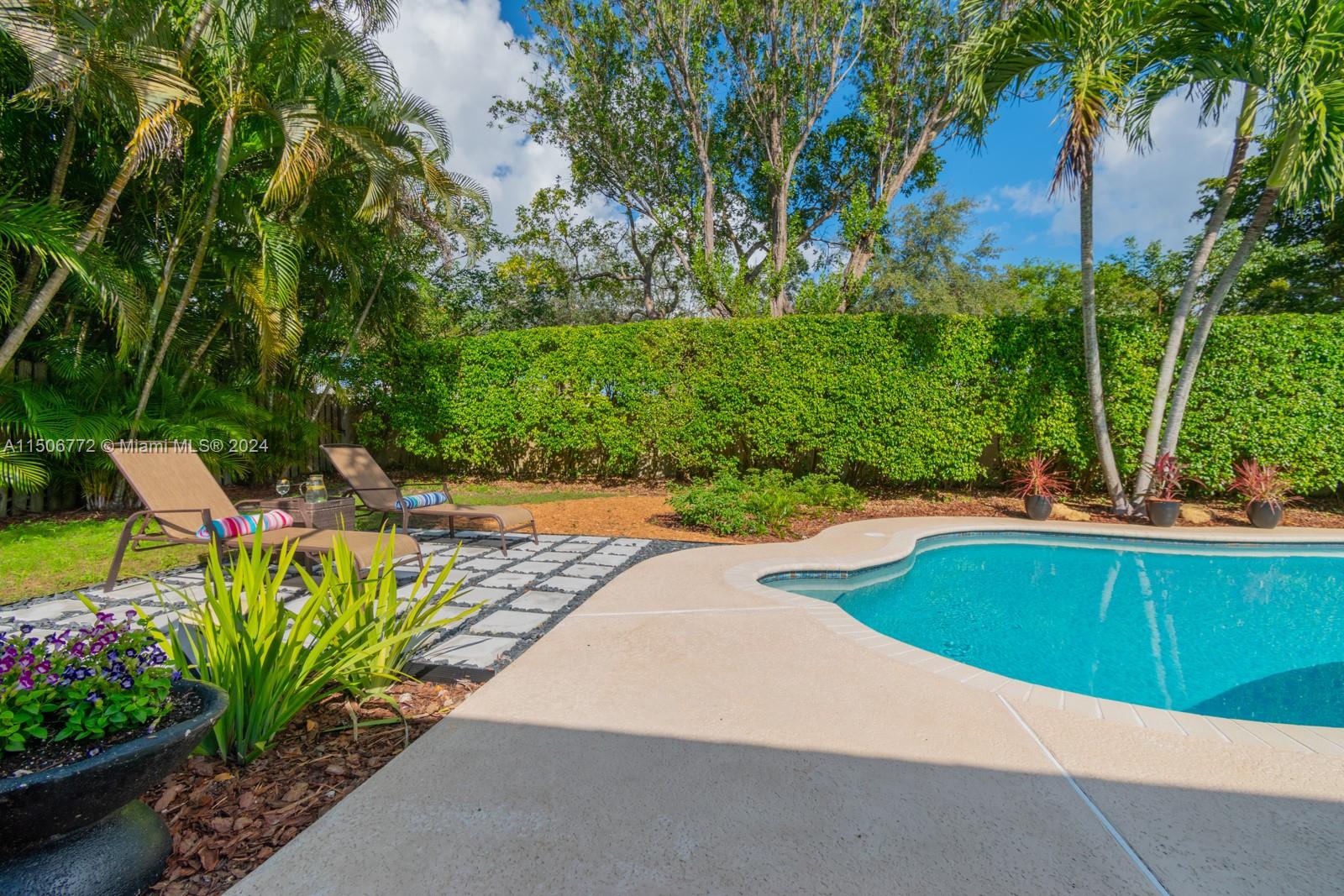 YOUR FUTURE HOME AWAITS! Spectacular 4b/2b split floorplan with LOW HOA! NEW impact windows, doors & garage. Free-form pool & deck, awning for shade, hedge along back, landscaped surroundings & fenced yard for private outdoor escape. French doors lead to primary suite with custom wood built-ins for DREAM closet. 2 separate vanity areas & step-down shower in main bath. Chef's kitchen features wood cabinets, stainless steel, granite counters & backsplash, generous pantry & recessed lights. Grand window & sliding doors for seamless interior & outdoor transition. Freshly painted accent walls & sloped ceilings enhance living atmosphere. Laminate flooring & new window treatments. Updated 2nd bath has tub/shower combo, glass sliding door, white vanity, granite top. AC 2019, Water H 2020, W/D 2021
