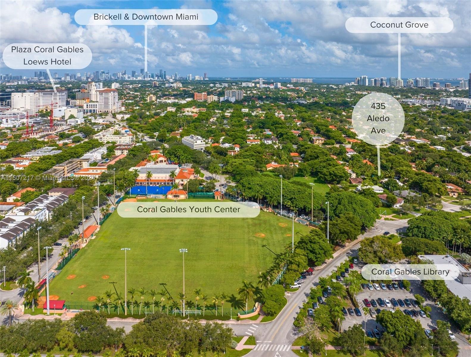 Brand new roof, awnings, gutters, and impact doors! Stunning residence in the heart of Coral Gables set just 1 block from the Gables Youth Center and Library. This timeless Gables residence is gracefully positioned on a generous 10,000 sqft lot with impact windows, new kitchen and brand-new roof, awnings, and gutters. Entering from tree-lined Aledo Ave, the light and bright living room with original hardwood floors leads to an expansive dining area, custom kitchen, large office/den, and captivating pool views from every angle. Lushly landscaped grounds extend a warm invitation to your own secluded pool sanctuary. Outdoor living spaces include covered terrace, outdoor kitchen, and deck off the primary suite offering ample opportunities to entertain and unwind poolside.
