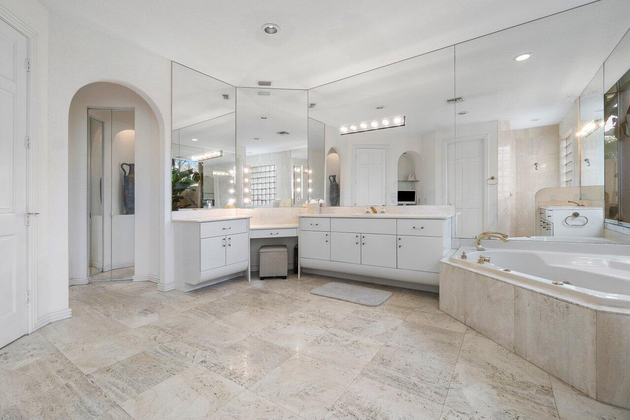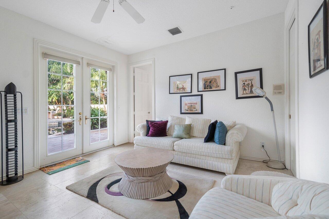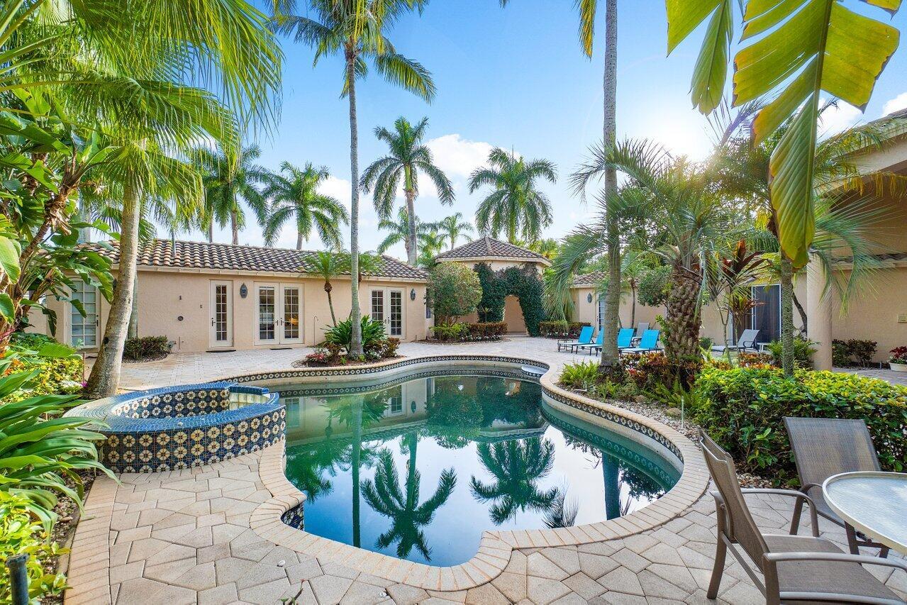Charming Courtyard home nestled in the estate section of the Laurels within the popular Polo Club of Boca Raton. This home is ready for a complete renovation and features 3 bedrooms and 3 baths in the main house, alongside a guest house offering 2 bedrooms and 2 baths. A spacious 4 car garage complements the 3,744 sq ft of living space.The kitchen, adorned with ample cabinets, seamlessly connects to the family room. Step outside to the pool and expansive outdoor area, a canvas for future entertainment ideas. Inside, tile adorns the main living areas while volume ceilings add to the allure. A separate guest house with 2 bedrooms, 2 bathrooms offers flexibility for an office and privacy.The Polo Club, an upscale mandatory membership country club, hosts 2 championship golf courses,