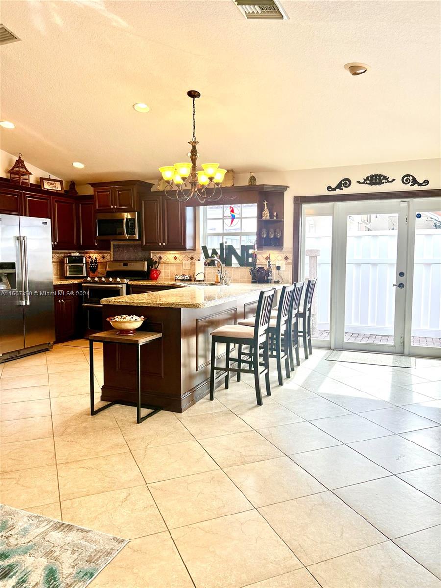 RARE FIND IN BEAUTIFUL SAWGRASS PLANTATION! Discover the allure of this 4 bedroom 2 full bathroom elegantly designed home! A formal dining room adds a touch of class, while the cozy breakfast nook provides a perfect spot to start the day, overlooking the patio enclosed by a PVC privacy fence with enchanting solar lighting! The kitchen is a chefs dream, featuring top of the line SS appliances, granite countertops, and chic double oven with gas/electric range. Luxuriate in the spa-like primary bathroom with a 5 head shower, while common areas boast stylish tile flooring and bedrooms exude warmth with wood accents. The exterior showcases a Chicago Brick driveway leading to a 2 car garage. Centrally situated, just minutes from the airport, expressways, great schools, and premier shopping!
