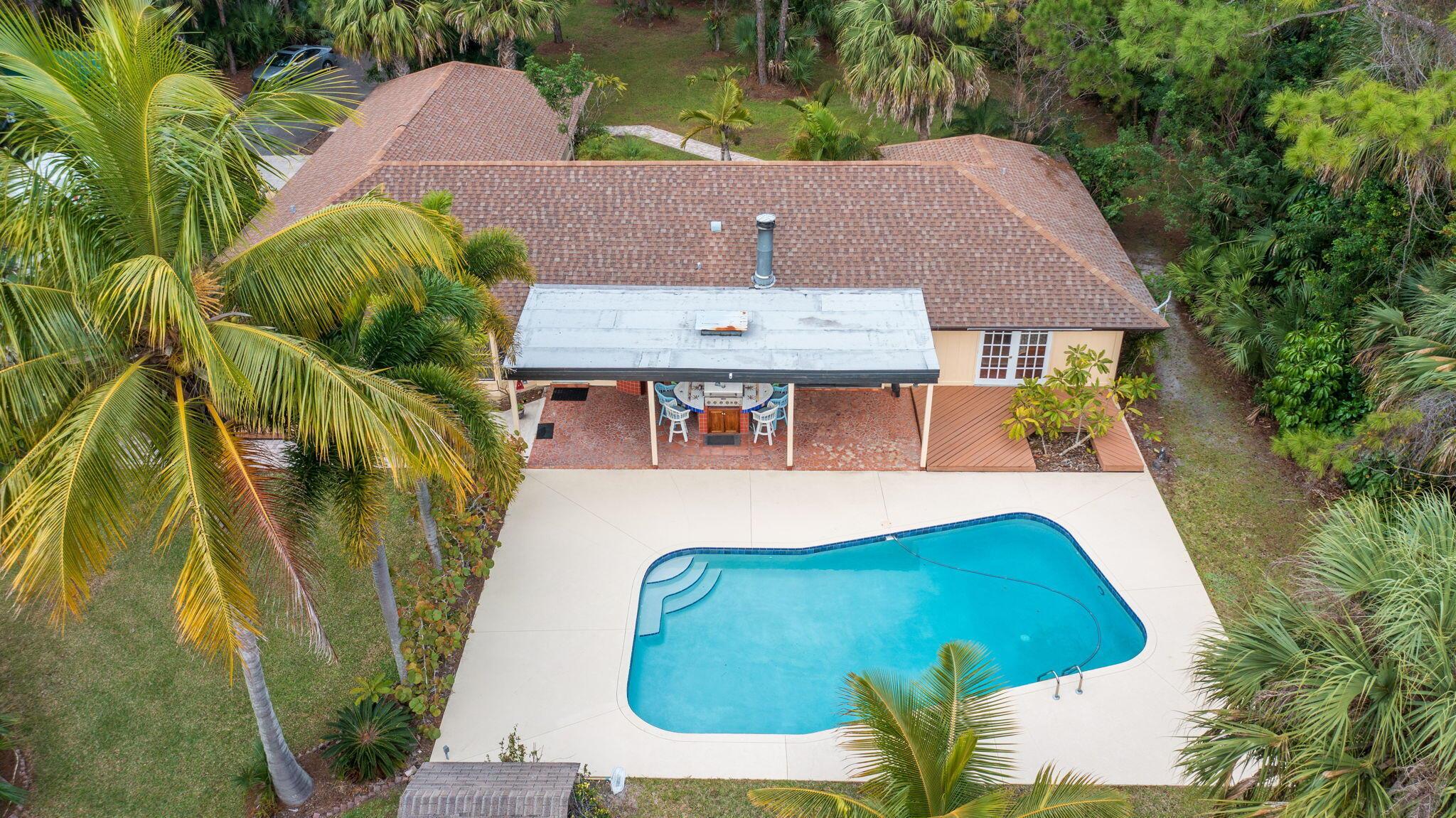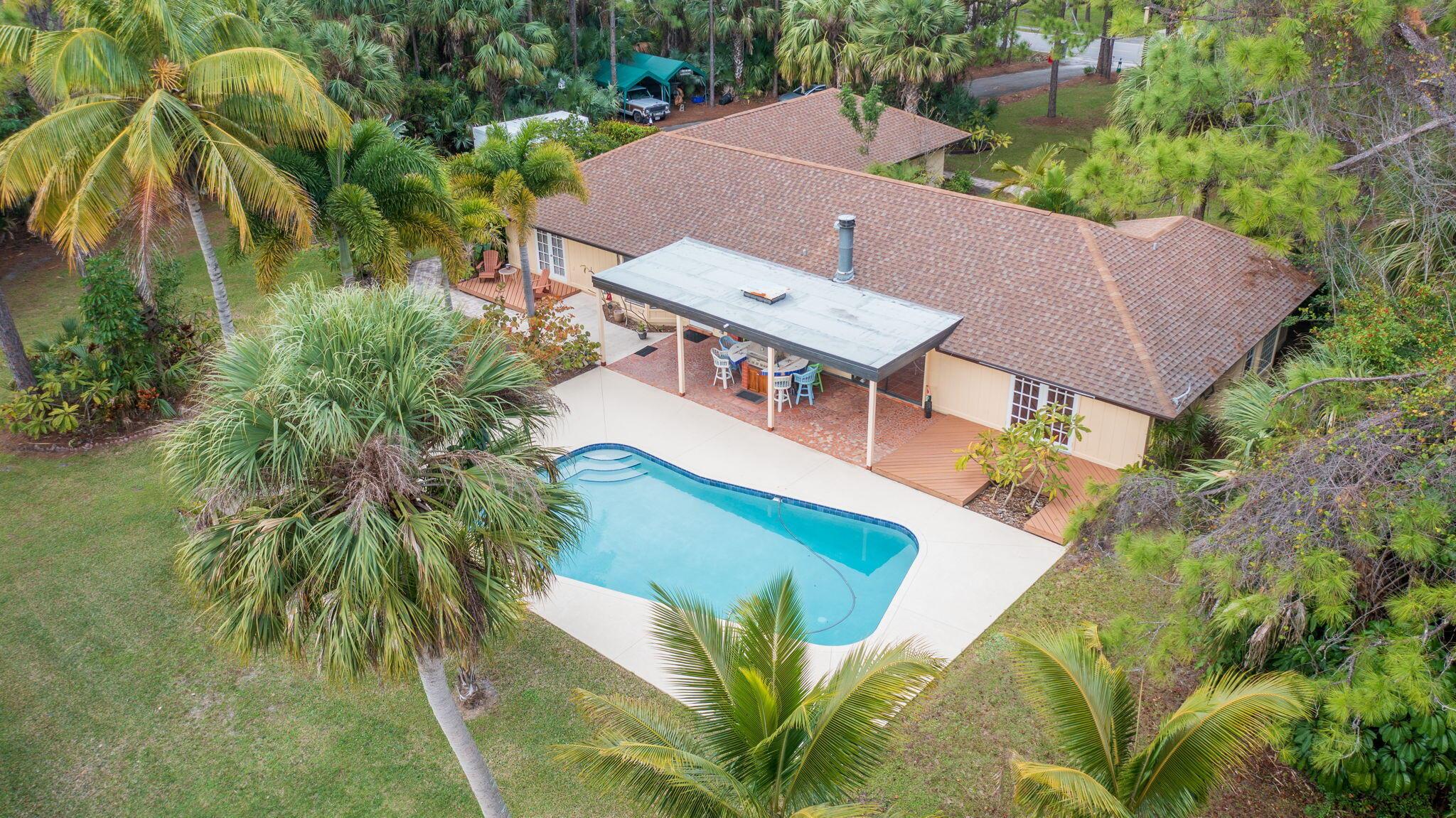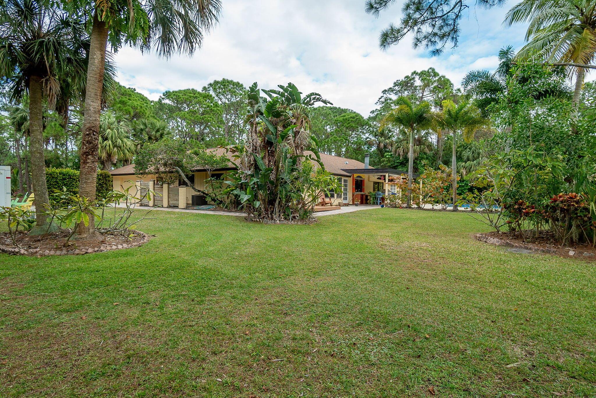 Rare Find *CANALFRONT* 4/2/2 in Palm Beach Country Estates PLUS there is a County 30' Easement on the West Side for added space & CORNER LOT!! This fabulous home backs up to a canal w/a private boat dock. This 1.34 acre private & secluded lot (as behind the canal is the 2700-acre Sandhill Crane Wildlife Refuge. The home features a newly refinished large pool & patio deck w/ 30' covered patio & summer kitchen w/bar. Newer A/C & Water Softener System-City H2O Avail., Lg Bedrooms, Stainless Appliances, Wood Cabinets, Granite Countertop, Pass Thru to Patio. Real Wood Burning Fireplace, Real Wood Exposed Beams, Interior Laundry Room, French Doors, Crown Molding, Lg Entry Way, New Epoxy Garage Floors. Plenty of Storage w/exterior shed & Horse Barn! Paved Road! Lots of New! NO HOA! Must See!!