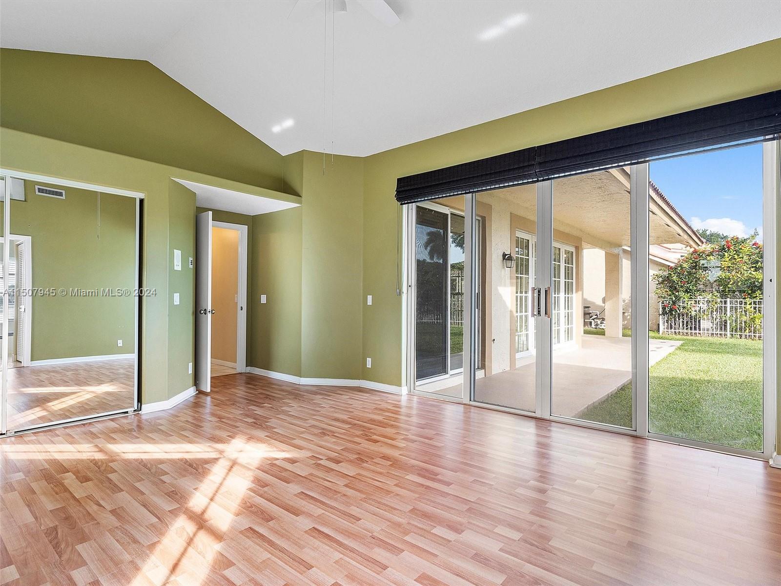 Charming waterfront single family with 4 beds and 3 full baths in gated community Laguna Springs. This home features a versatile floor plan, the primary bedroom and another bedroom and full bathroom are located on the ground floor. On the second floor 2 bedrooms, a full bathroom and a loft offering a flex space for an additional bedroom, home-office or playroom. Open floor plan with high ceilings, glass doors and large windows to enjoy the lake view and natural light coming in. Renovated kitchen with SS appliances and granite counter. Laminate and tile floors throughout. Large backyard with plenty space for pool, perfect to entertain guests. 2-Car Garage. Community amenities include pool and basketball court. Close distance to parks, shopping, dining and major highways. A+ Rated schools.