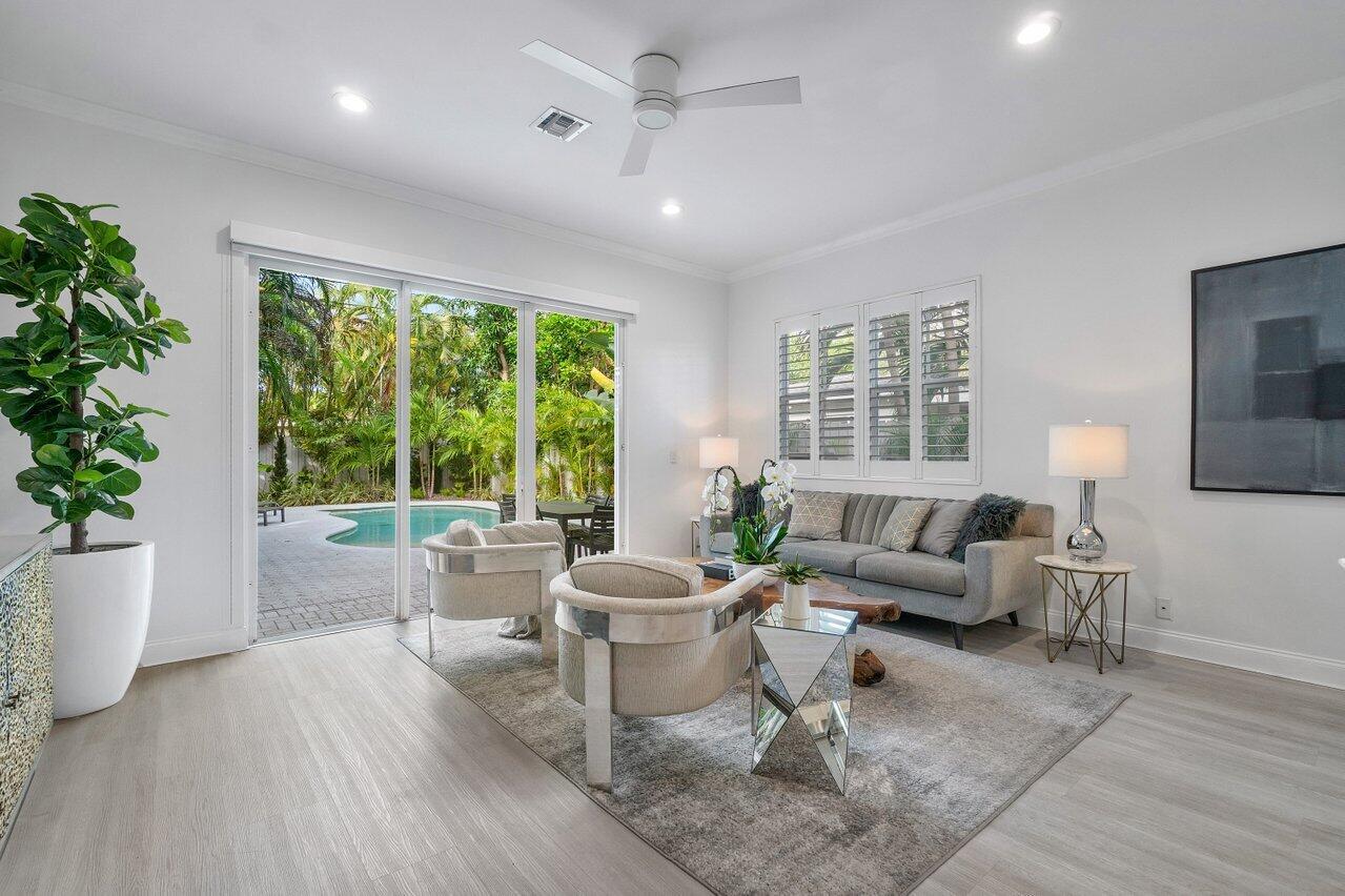 Renovated contemporary 2 story townhome with outdoor space in sought after Lake Ridge neighborhood. Large private saltwater pool with outdoor kitchen grill. Corner unit offers abundant natural light. Updated modern bathrooms. Engineered hardwood and marble flooring. Updated kitchen with granite counters and backsplash, stainless appliances and wine fridge. Separate indoor laundry room. Impact windows and doors throughout. New hot water heater. One car attached garage. Lush landscaping. No HOA, so easy move in and no monthly fees. Quiet neighborhood convenient to Wilton Manors, Las Olas, US1 and the Beach.