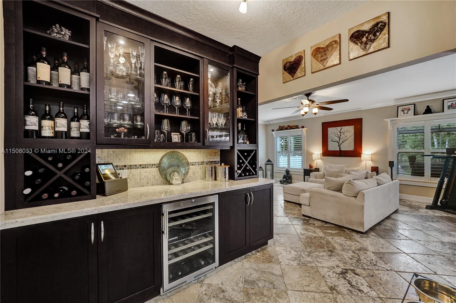 A pristine waterfront home with no neighbors behind you, this property features 3 spacious bedrooms plus an additional office/bedroom and 2.5 beautiful baths. FULL IMPACT windows, oversized covered patio and beautiful pool with TV for outside entertaining and surround sound throughout. A gorgeous chef’s kitchen with custom cabinetry, SS appliances, top-of-the-line Viking 2 oven featuring 8 burner gas stove, Miele's commercial espresso and prep sink, and wine cooler/bar! There's ample space for additional play areas, newer roof and washer/dryer, circular driveway and 2 car garage. No HOA and access to Bonaventure Town Center's resort style amenities (tennis, pools, gym). Enjoy the best of Weston including top-rated schools, parks, easy access to beaches and highways.