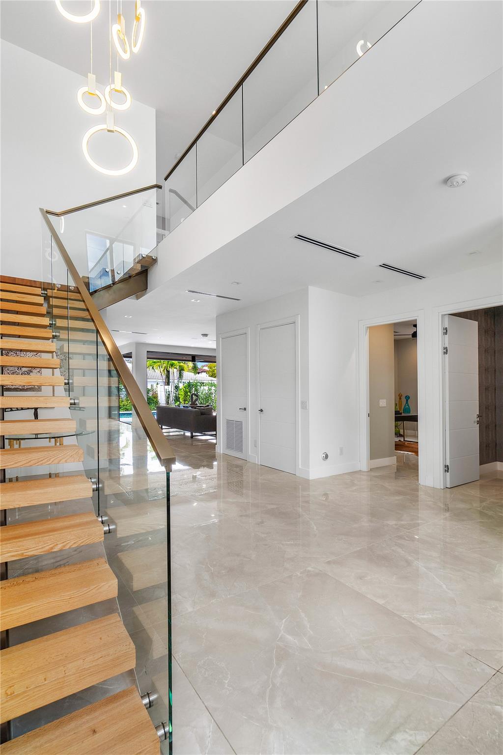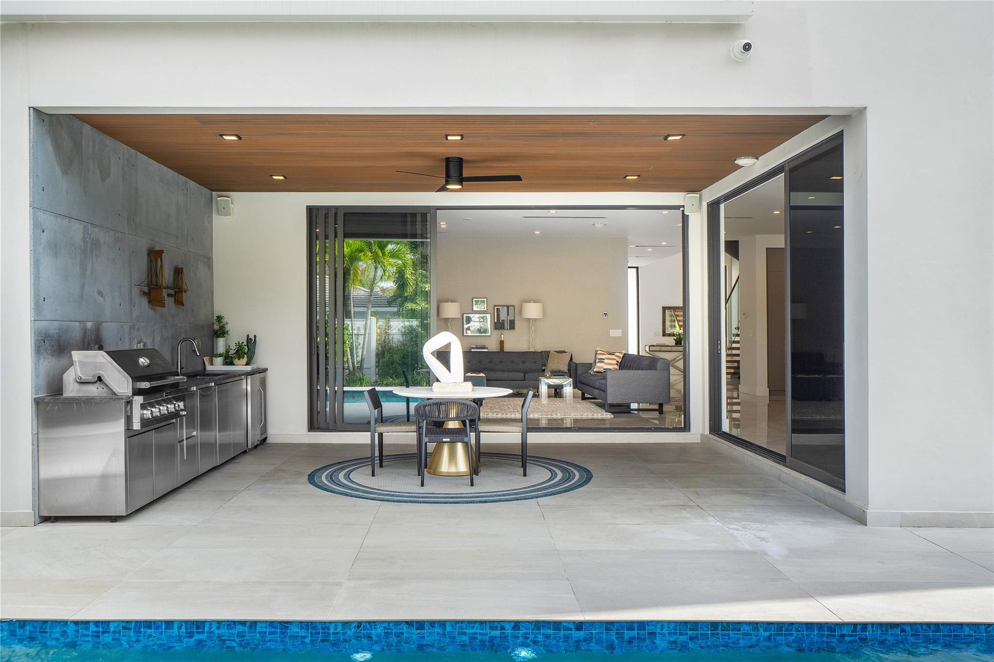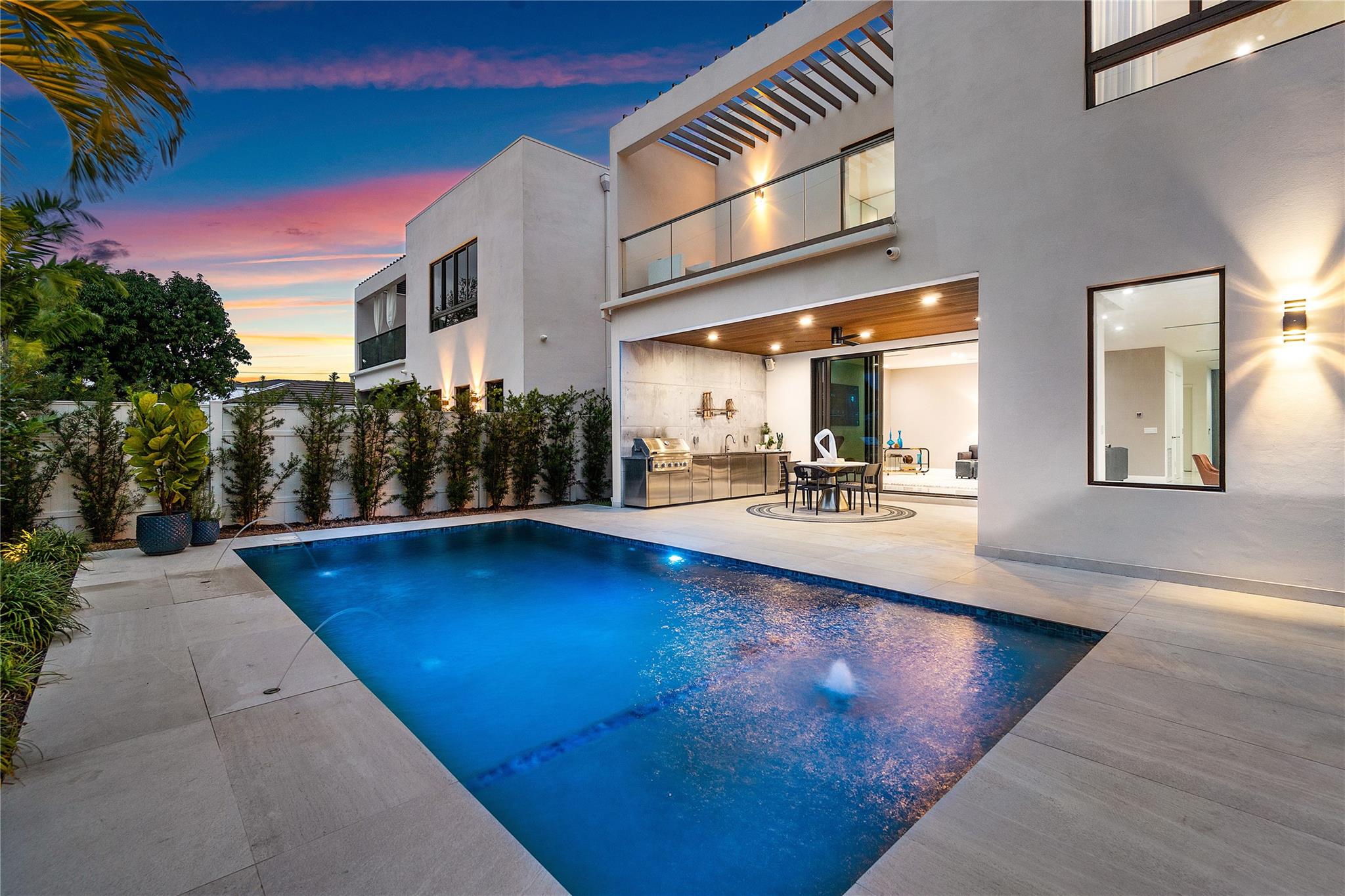 Victoria Park Perfection! This 2-story home redefines upscale living in Victoria Park. Spanning 3,756 sq ft under air, 4 large bedrooms and 4 1/2 bathrooms. The open-concept first floor features a chef's kitchen, a living and dining area that opens to a private yard with a heated saltwater pool, summer kitchen, and covered patio. The lower level includes one bedroom with a cabana bath, a half-bath, and a 2-car garage. Primary bedroom has balcony overlooking pool, double custom walk-ins and bathroom with double-sink floating vanity, soaking tub, and dual-head shower. Second floor has bonus room ideal for a den, office, or media room, along with a laundry room. High ceilings and impact windows offer natural sunlight, complemented by a dramatic floating staircase. Attached features sheet.