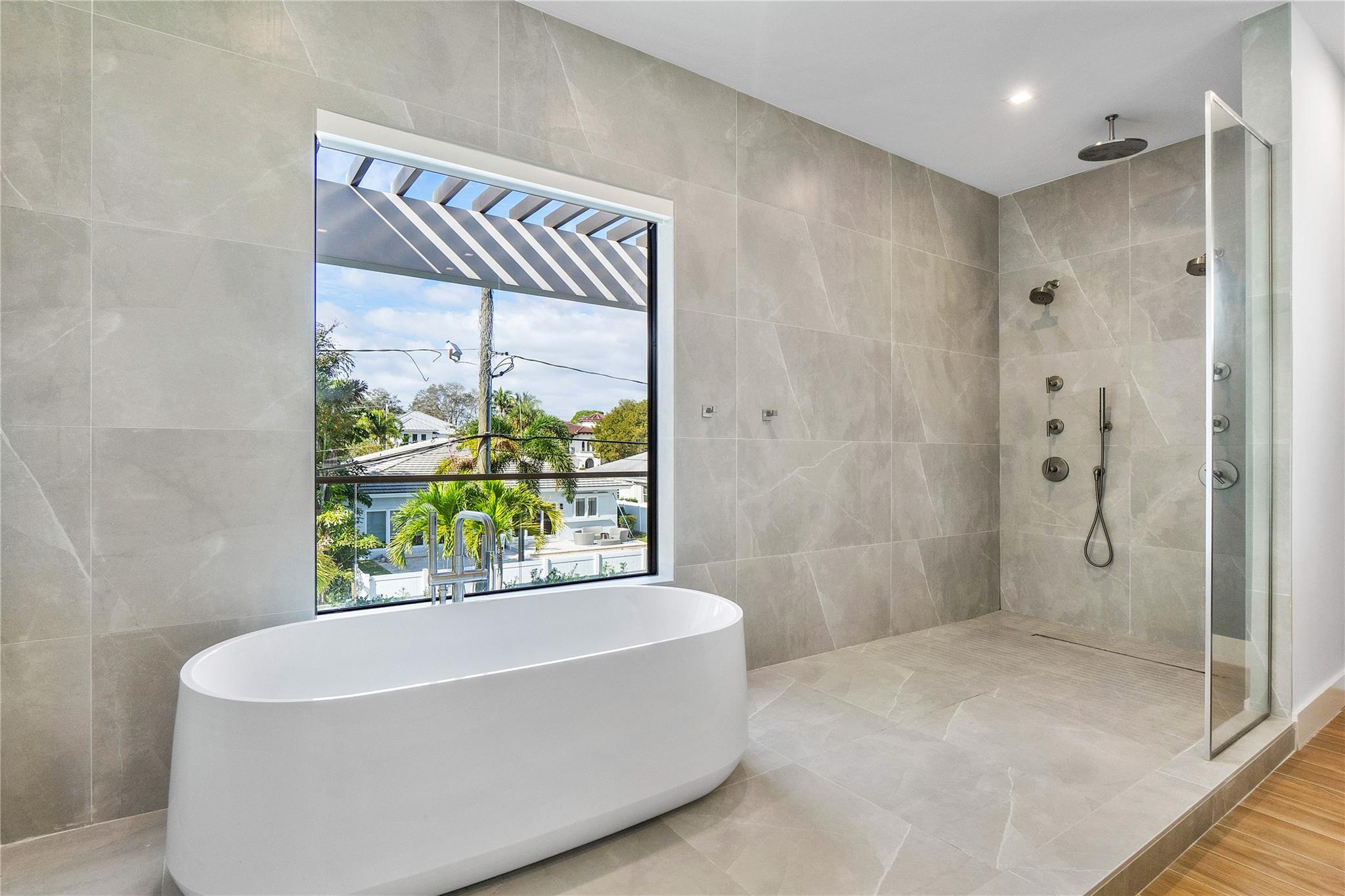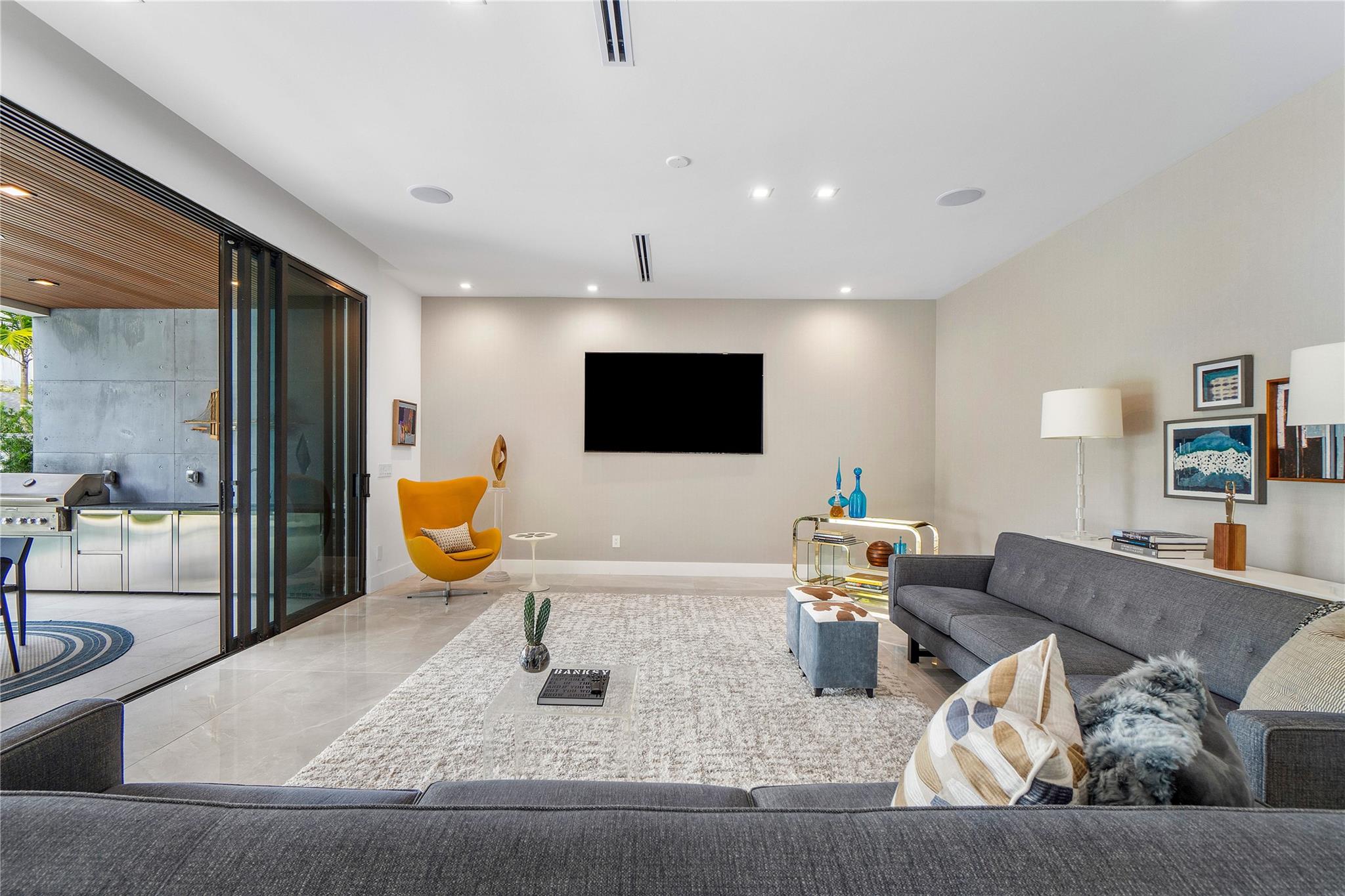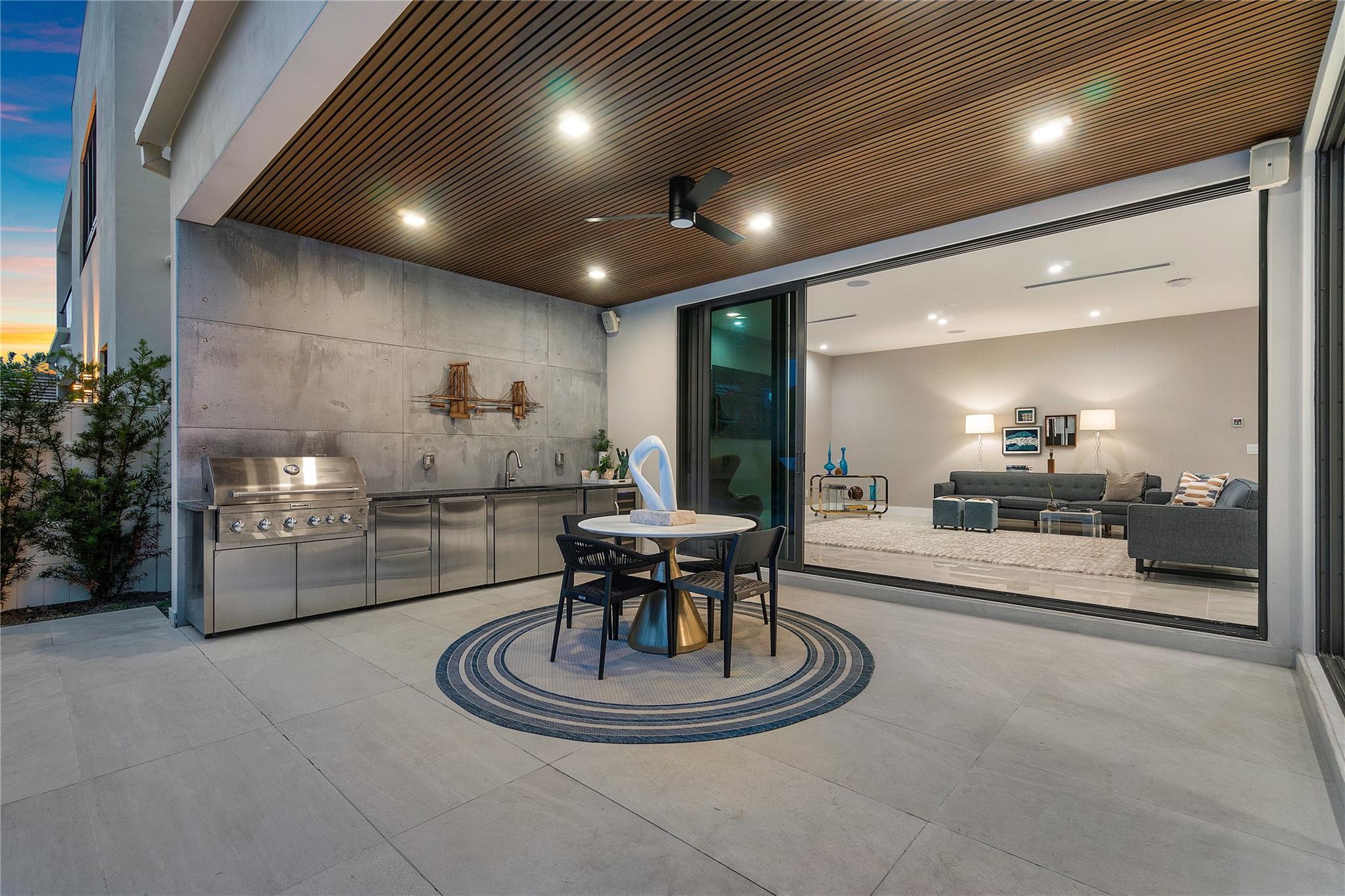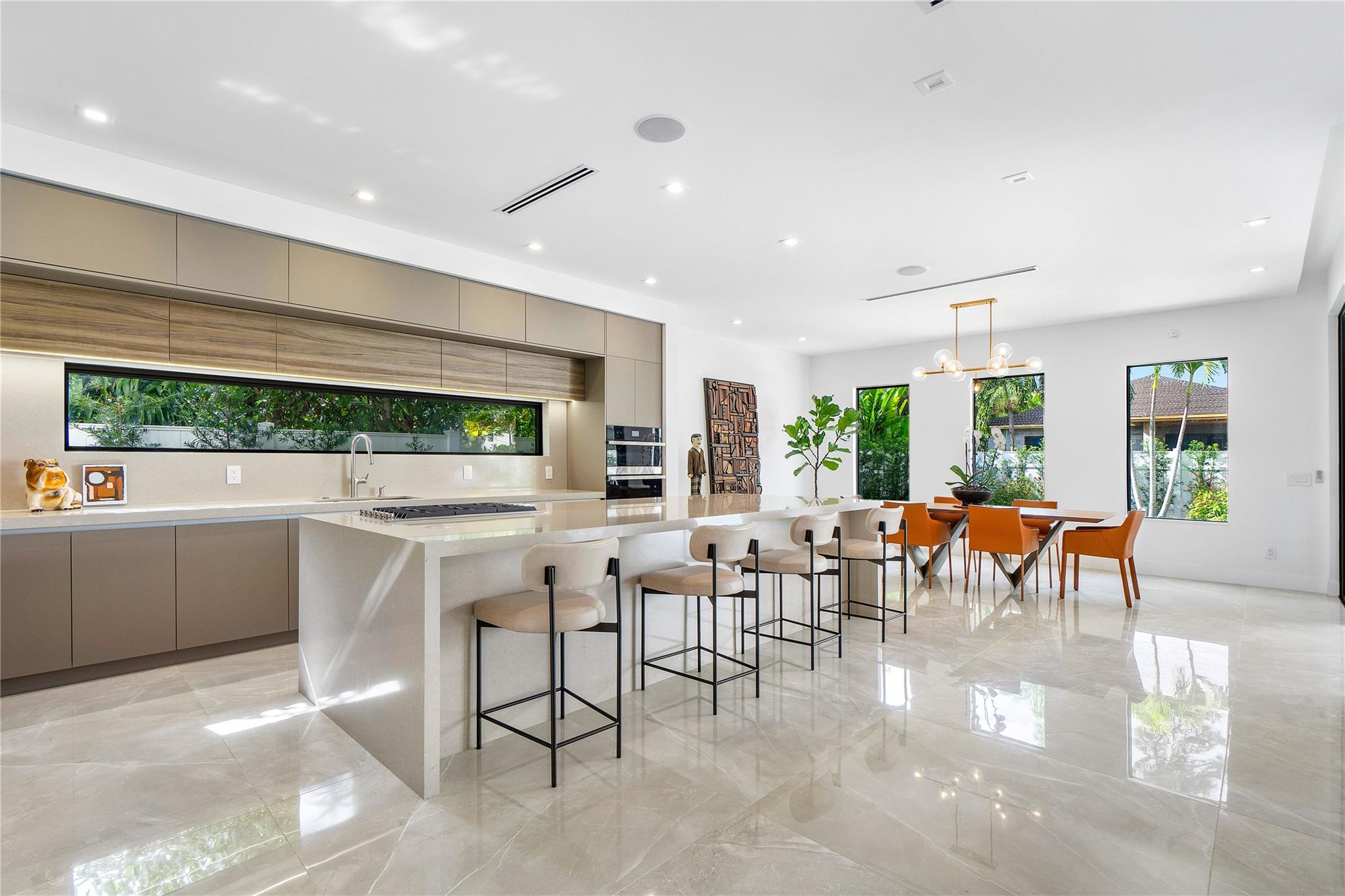 Victoria Park Perfection! This 2-story home redefines upscale living in Victoria Park. Spanning 3,756 sq ft under air, 4 large bedrooms and 4 1/2 bathrooms. The open-concept first floor features a chef's kitchen, a living and dining area that opens to a private yard with a heated saltwater pool, summer kitchen, and covered patio. The lower level includes one bedroom with a cabana bath, a half-bath, and a 2-car garage. Primary bedroom has balcony overlooking pool, double custom walk-ins and bathroom with double-sink floating vanity, soaking tub, and dual-head shower. Second floor has bonus room ideal for a den, office, or media room, along with a laundry room. High ceilings and impact windows offer natural sunlight, complemented by a dramatic floating staircase. Attached features sheet.