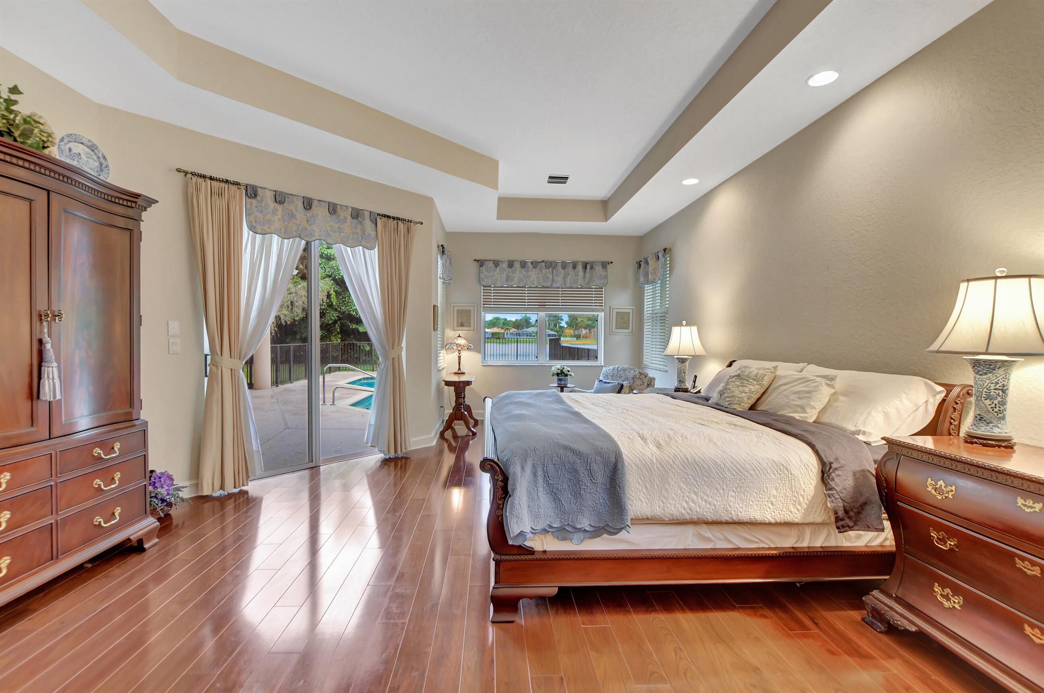 Meticulously maintained one story single family home located within the security gates of the highly sought after Estates section of Boca Falls. Containing over 3700 feet of living space, this 5 bedroom 4 bathroom home features a beautiful lake view, private pool, storm protection, split floor plan, remodeled primary bathroom, whole house water filtration system, walk in closets, heated pool with waterfall, newer air conditioner with electronic thermostat, whole house vacuum, recently refinished pool and much more. Boca Falls is located close to parks, a 27 hole golf course, tennis, pickleball, soccer fields, baseball diamonds, softball fields, shopping, restaurants and many other close by amenities. Boca Raton is located between West Palm Beach and Miami.