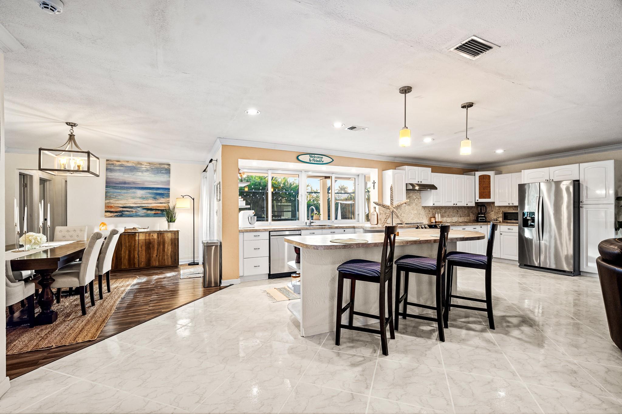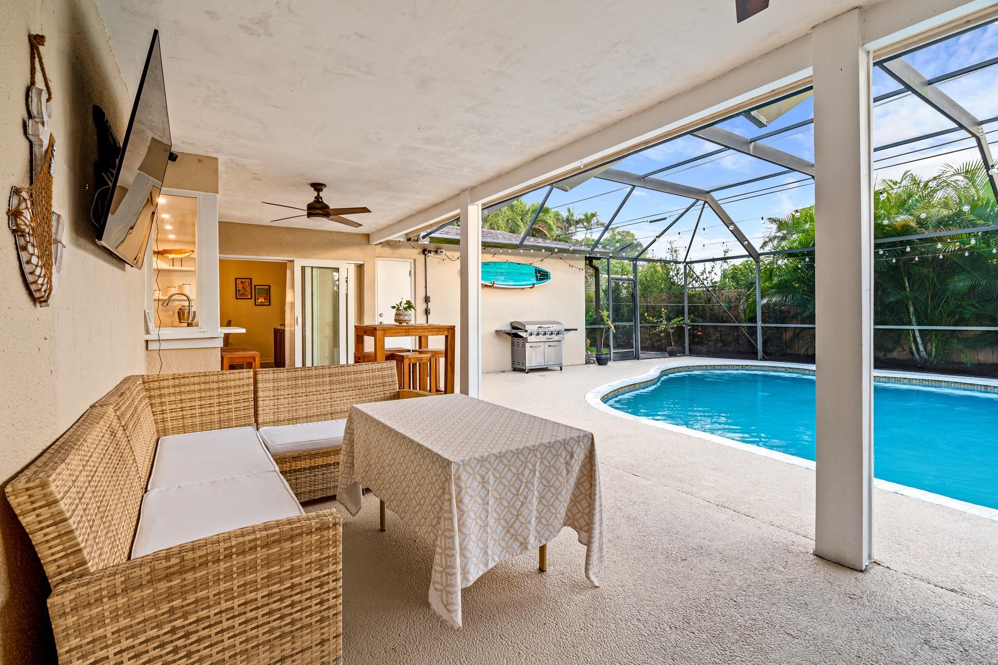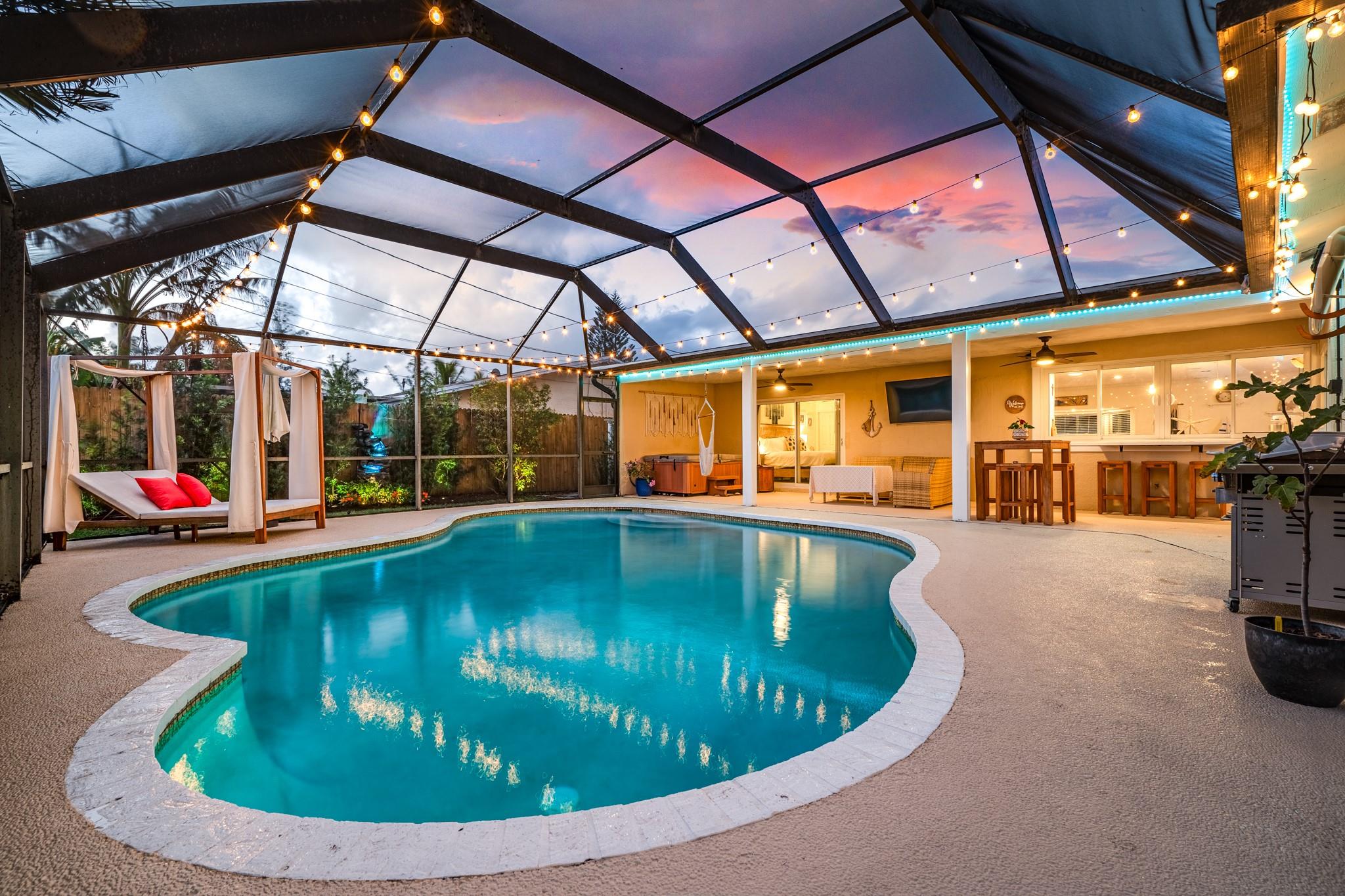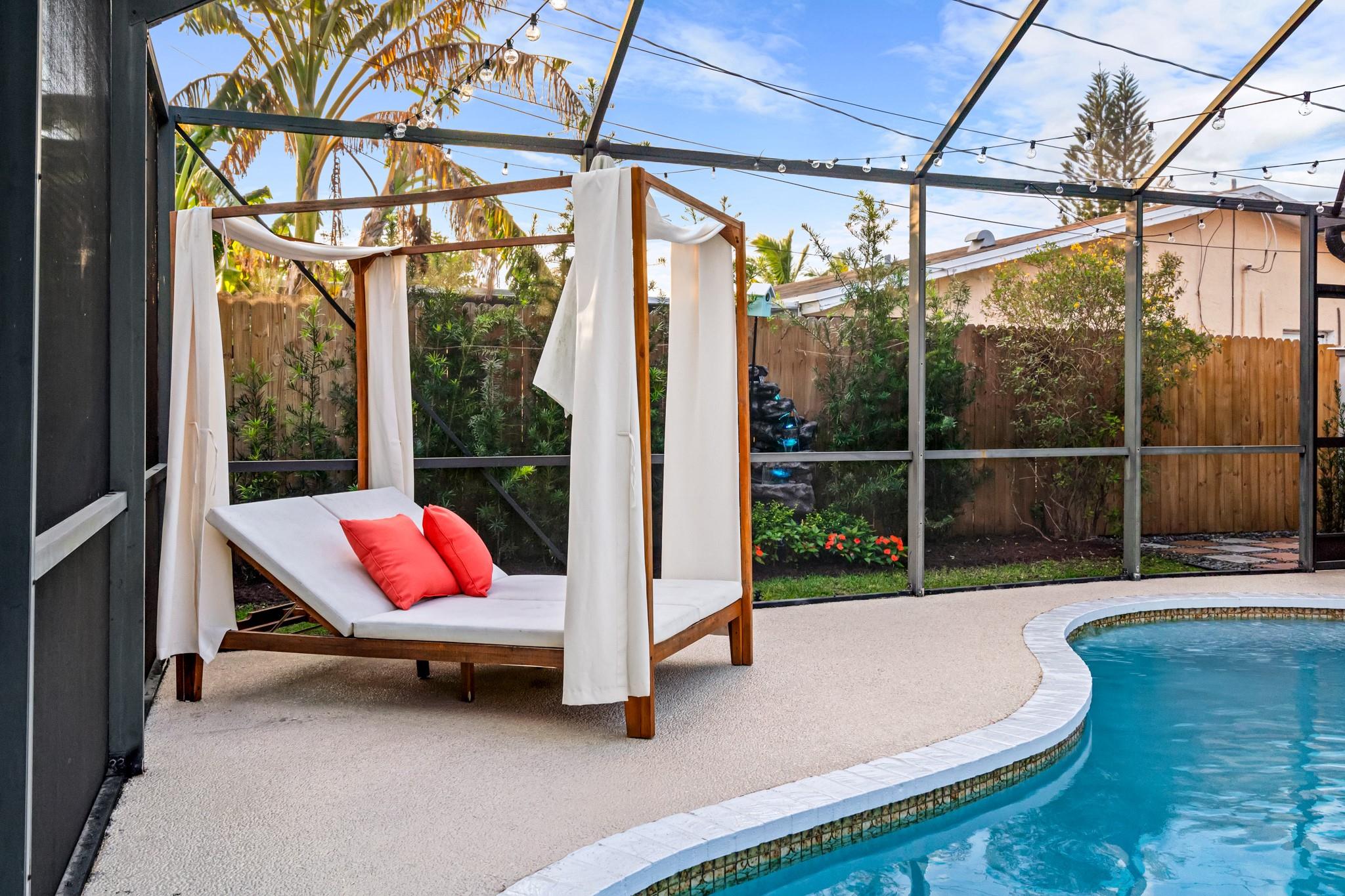 Beautifully updated 4 BR 2 BA pool home with 2 car garage located in the heart of Sunrise. All capital improvements have been done for unbeatable insurance rates. Roof 2022, Impact windows and doors 2021! Light and bright open living area with plenty of natural light & huge kitchen for entertaining living / dining room. White shaker cabinetry, stainless steel appliances. Fantastic fenced-in backyard area surrounded by lush landscaping and exterior lighting. Screened-in pool area with pool and covered patio space but also nice sized yard with fire pit and room for pets.