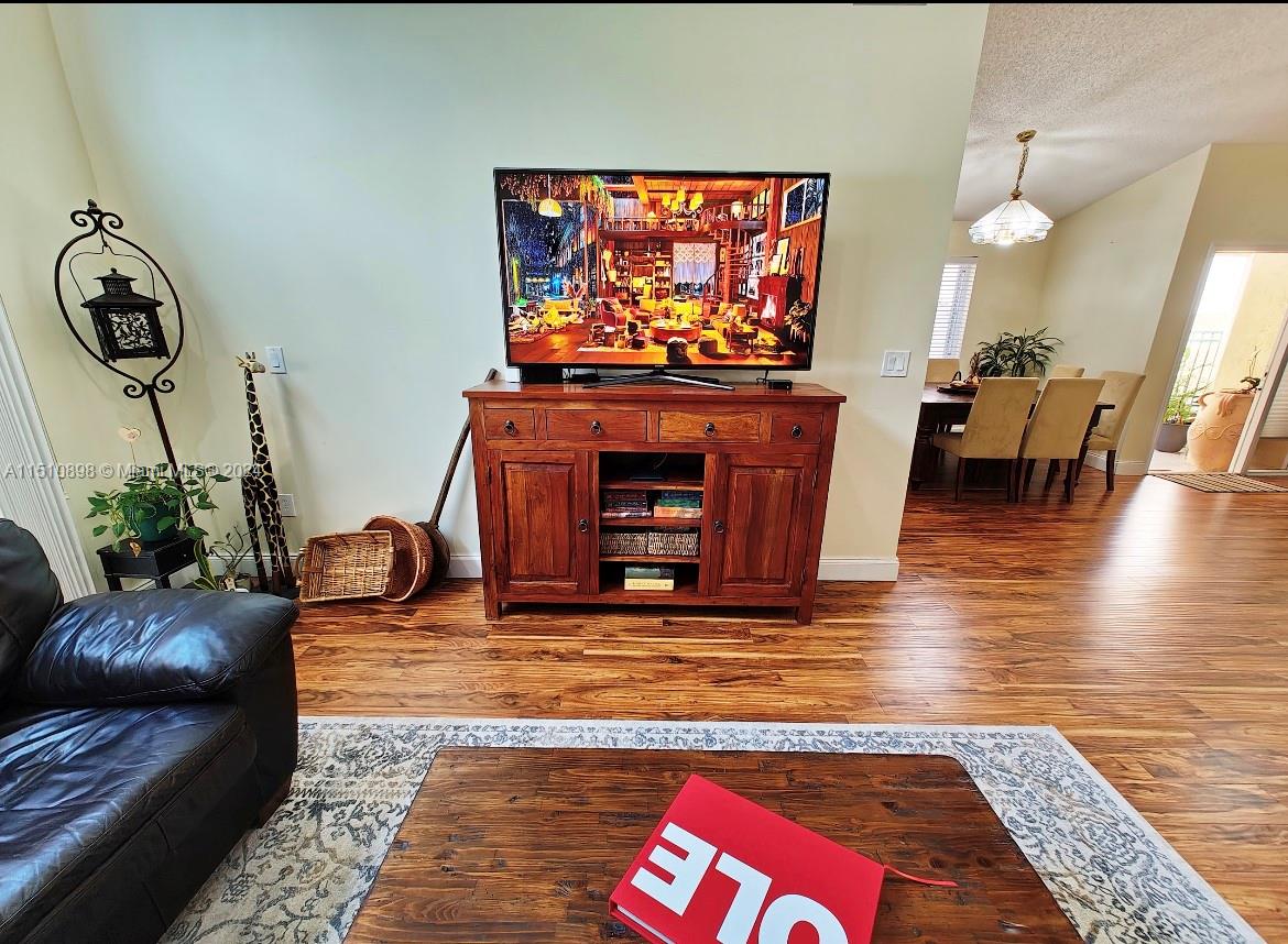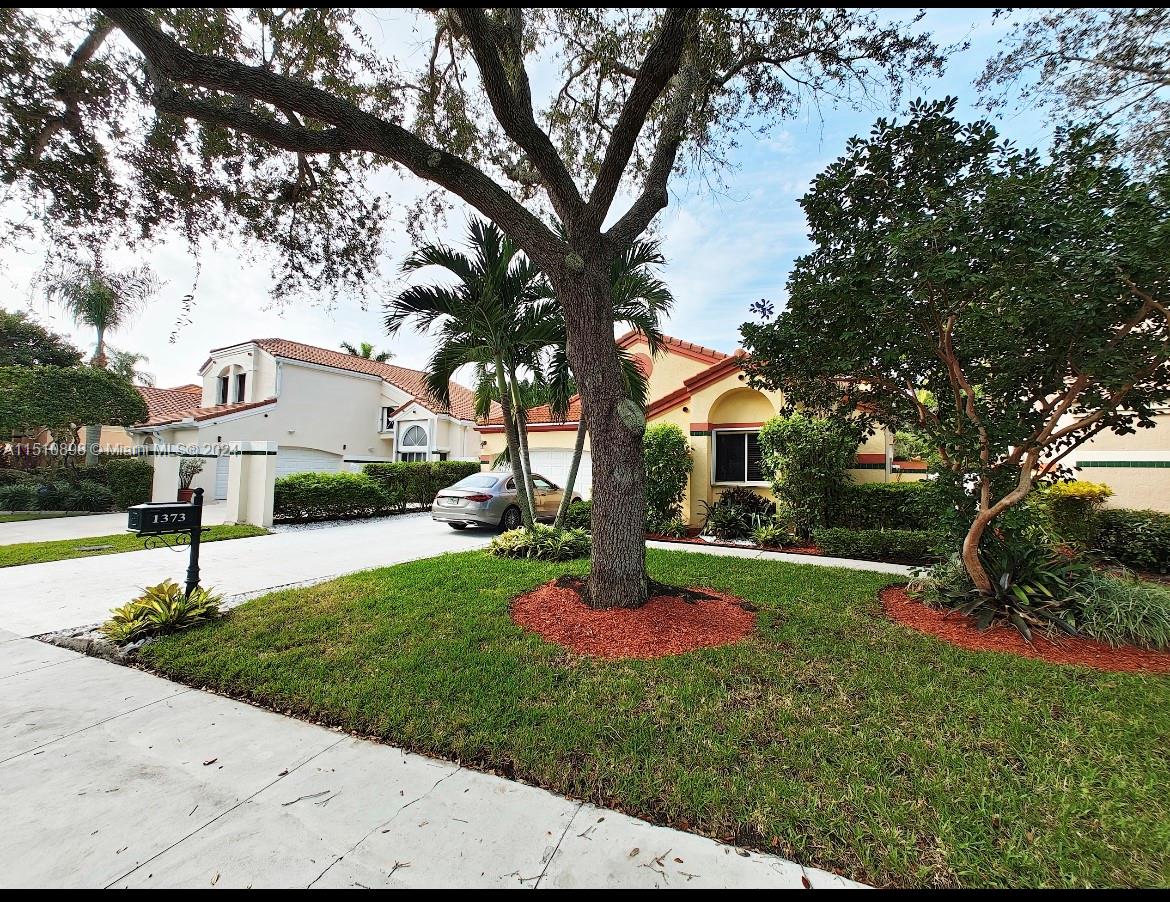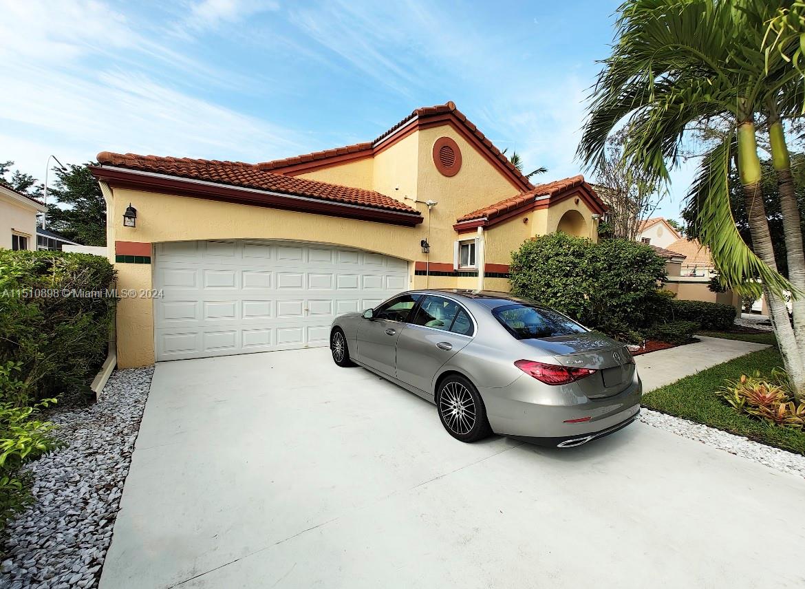 Weston... Gorgeous ONE STORY HOME WITH 3 bedrooms-2 bathrooms-2 car garage + 4 car driveway/semi cul de sac/GATED enclave only 86 homes @Coral Harbour/NEW ROOF from 2019/A+RATED schools/ Wonderful Open floor plan w/ French doors leading to an amazing patio covered with real wood pergola for entertaining/Kitchen features: granite counter tops/ custom cabinets/ Island with barstools/ stainless steel appliances/ state of the art commercial grade water filter by Rain Soft/ accent lighting/House features an additional TV room, completely permitted with impact windows and steel reinforced structure/Primary bathroom with tub+ shower +double sink. The Garage has vinyl flooring/portable air conditioners included/insulated hurricane door. The attic has plywood floor/mechanical ladder for access.