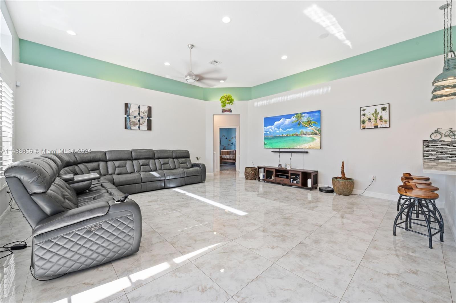 PRICED TO SELL! Welcome to this amazing home in Sunset Lakes, gracing just over a ¼ acre with a stunning view of the lake from the backyard. This home features endless upgrades with renovated kitchen & bathrooms, porcelain floors throughout, wood floors in the bedrooms, plantation shutters, new closets, SMART washer & dryer, security system and AC. New kitchen sink, new pool cleaning robot & storm protection accordion shutters. Artfully designed for entertainment, this home blends an open-concept interior with an alluring screened pool area & a meticulously crafted outdoor kitchen & grill great to enjoy with family & friends. The saltwater pool has recently received a makeover with resurfacing, new tile, pump & heater, automated Aqualine system, LED lighting, & refined travertine accents.