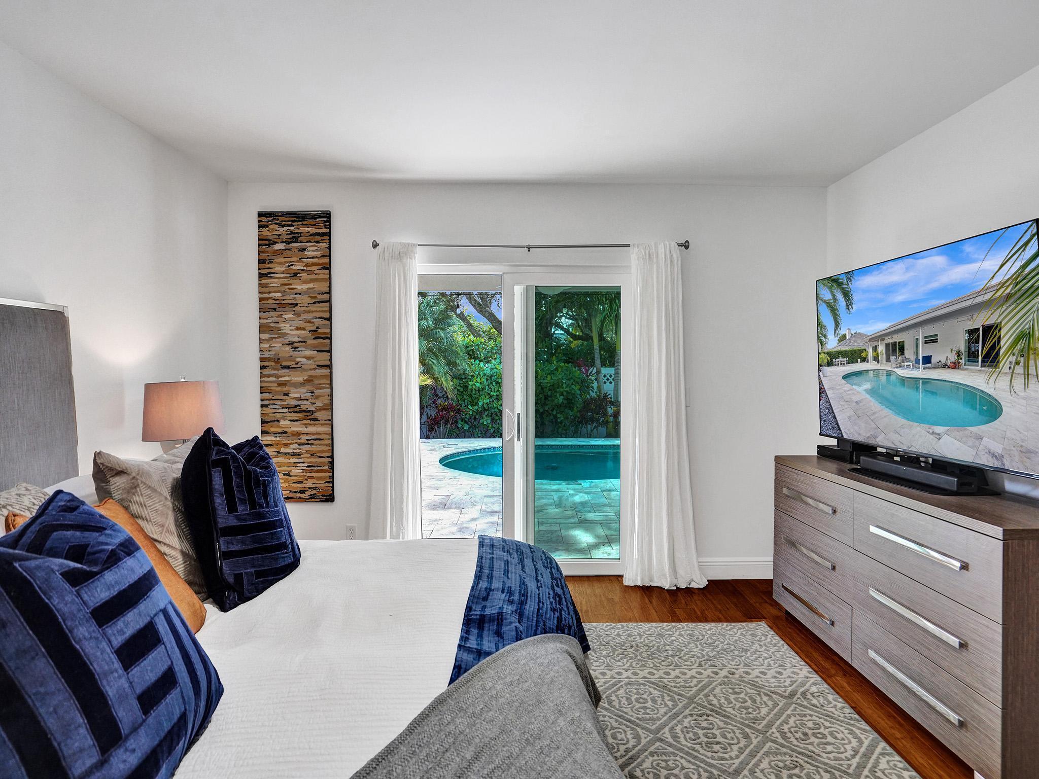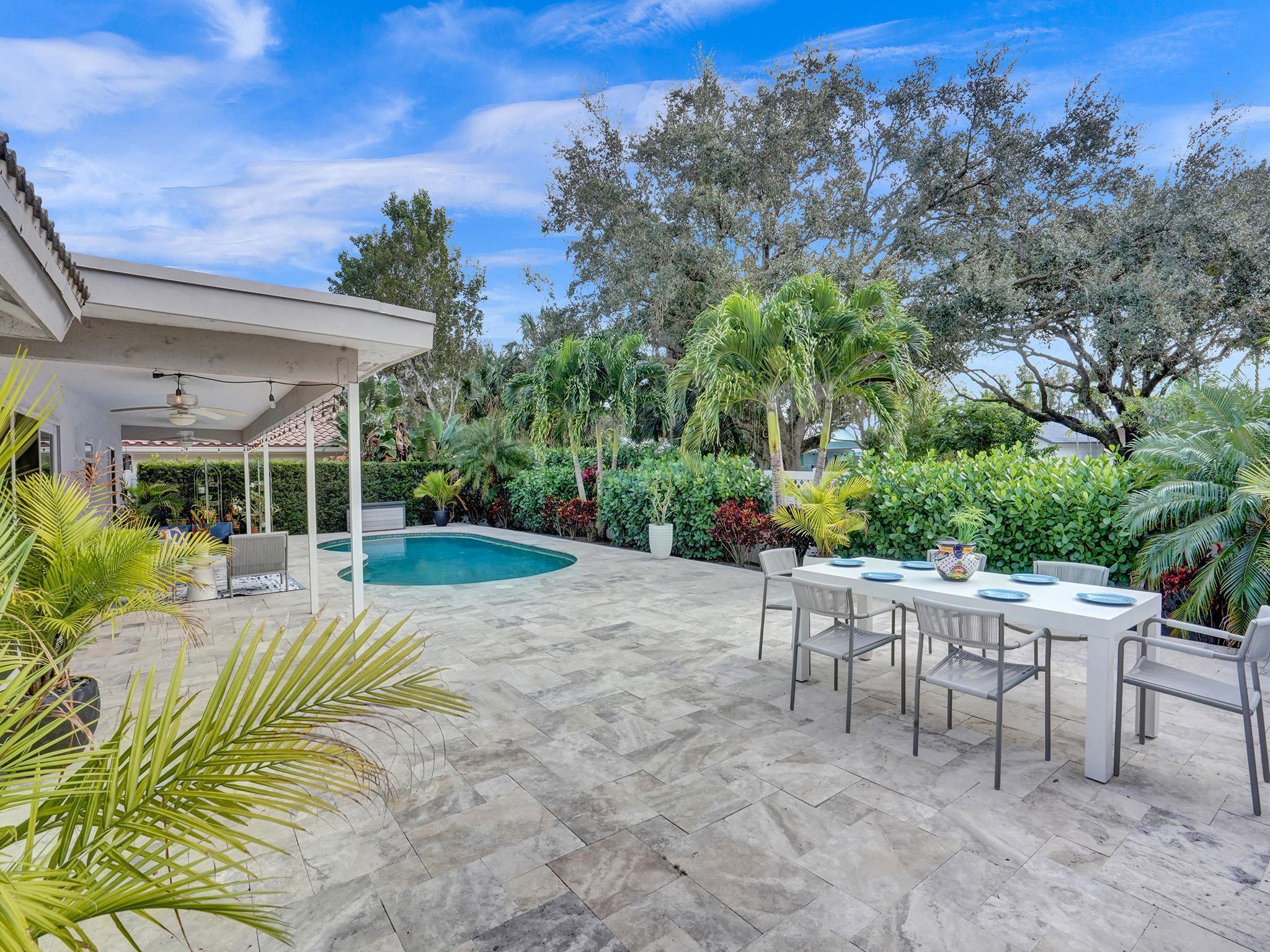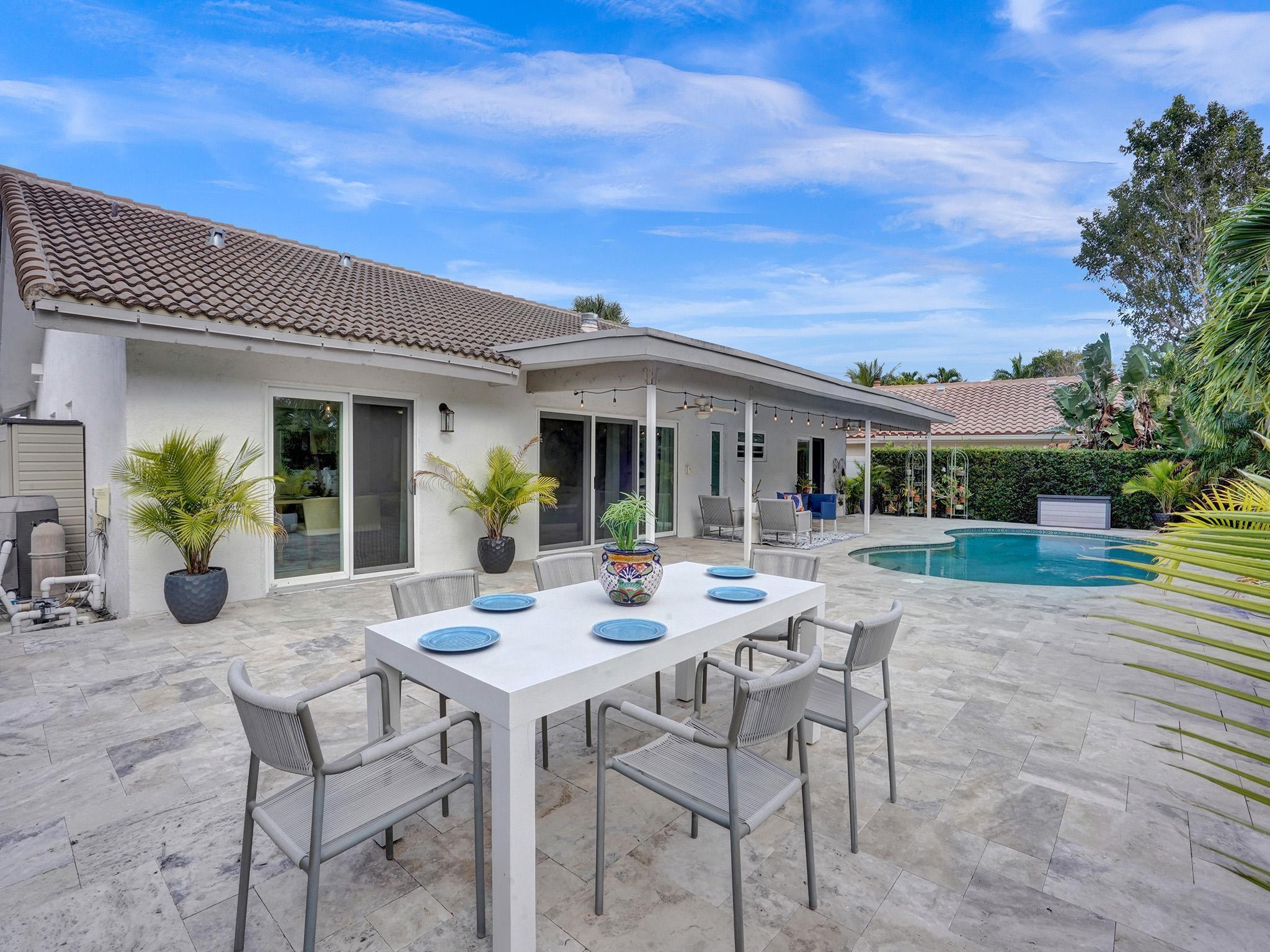 Incredible move-in ready East Boca home zoned Addison Mizner K-8 school. Enjoy South Florida living in the renovated backyard complete with a fantastic covered area offering the ability to extend your living space (just add a flat screen)with ultimate privacy. Freshly painted inside/out, meticulously maintained home has undergone massive updates: full impact windows/doors, custom sliding glass doors, roof w/upgraded wall straps, tankless water heater, pool heater, blown insulation & smart home features. Gorgeous master overlooking heated pool, walk in closet, plus a luxury ensuite w/cabana door. Super bright/airy LR, vaulted ceilings and a floor to ceiling wood burning fireplace! 2.5 miles to the beach, school bus service, bike to Sugar Sand/El Rio park. Sidewalks, underground power, A++