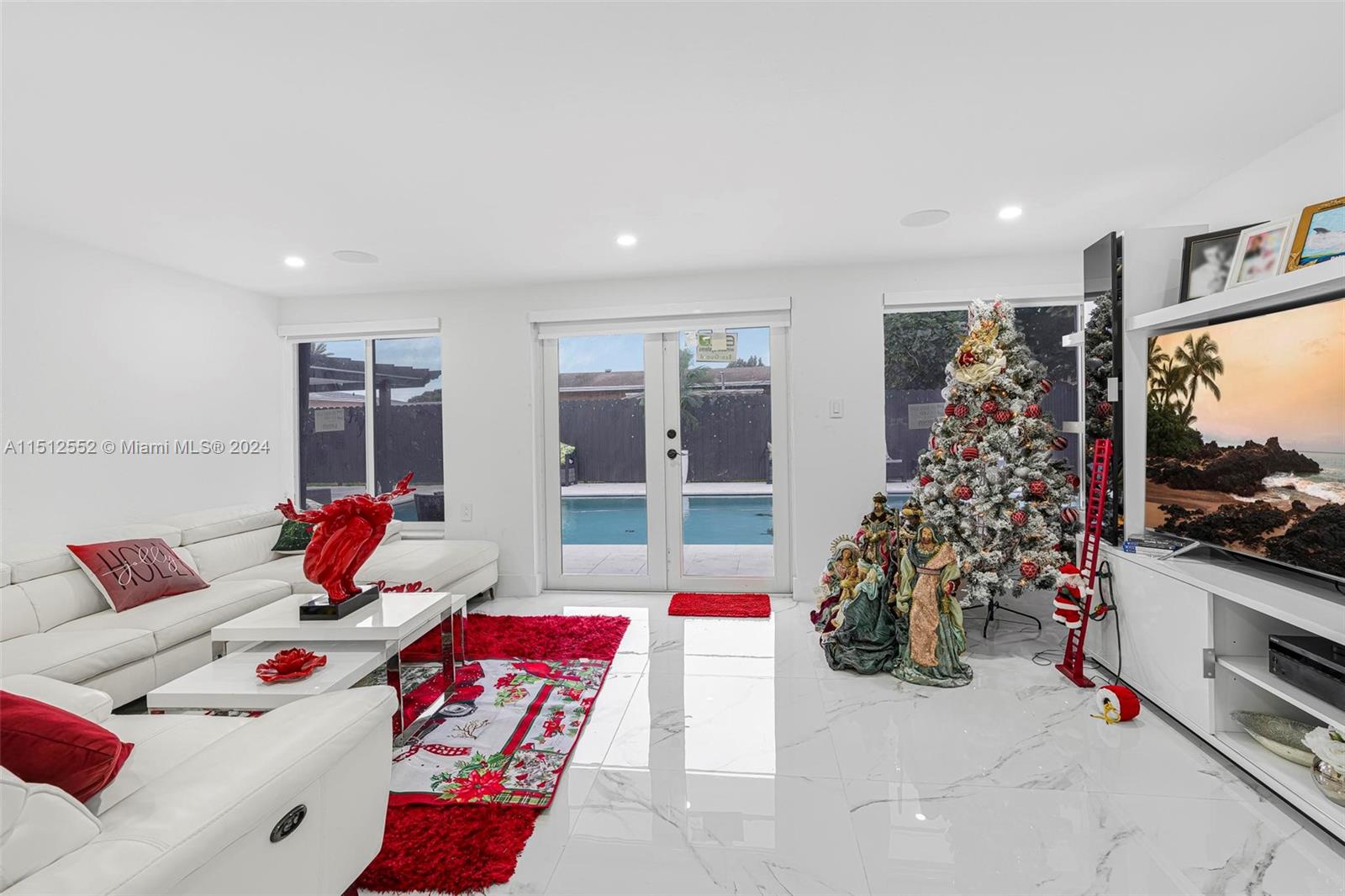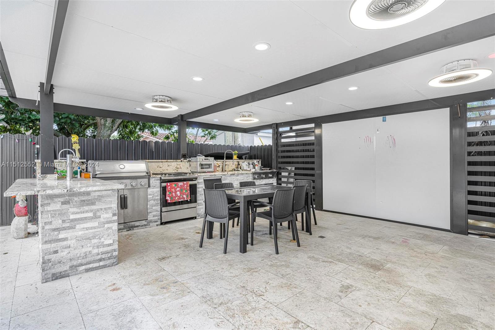 Recently renovated single family home with 3 bedrooms and 2 interior full bathrooms. Back patio has a big pool along with covered built-in-BBQ and exterior bathroom with shower. Patio also includes covered terrace on the left side and right side of the house. Side of the house also has an efficiency with private entrance and another full bathroom. Home has a new aluminum roof along with storm proof windows all throughout the home. The family room has built in speakers perfect for entertaining. Entire house also has recessed lighting with optional multi-colors which can be individually controlled via bluetooth. Make sure to schedule your showing today!