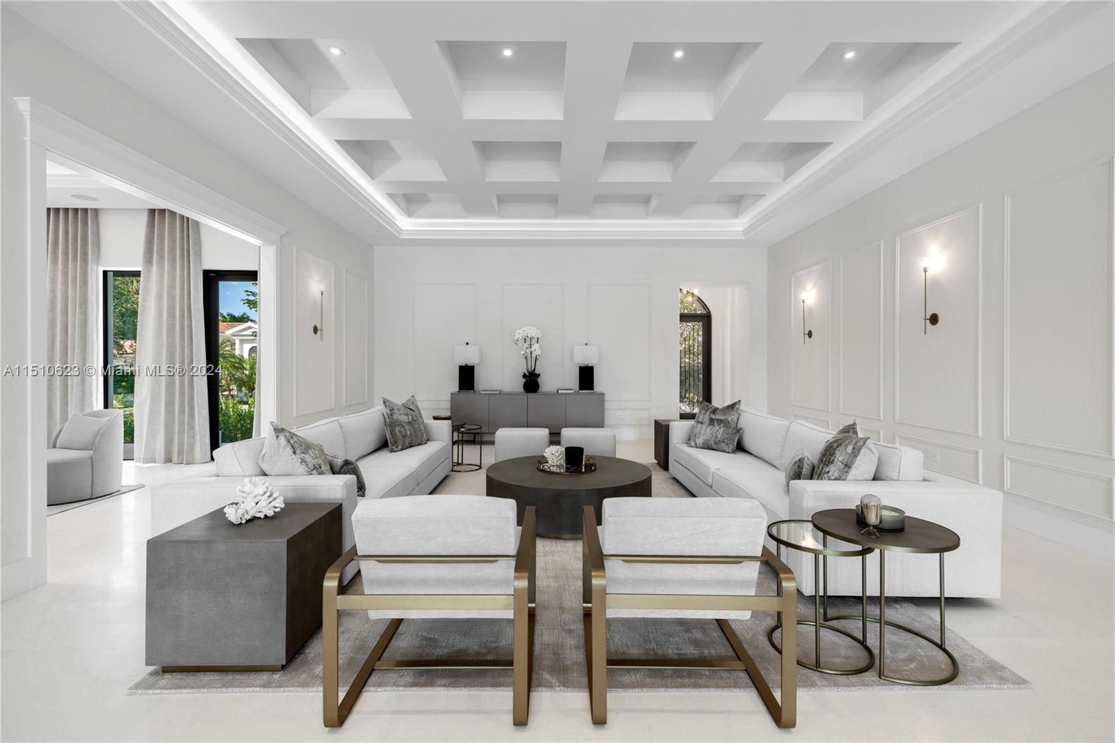 Experience unparalleled luxury! Situated in one of Coral Gables’ prestigious gated communities, this Cocoplum gem exemplifies waterfront living. Designed by TAI Architecture and Opus Design, this home offers 5 bedrooms, 6 full and 2 half bathrooms, spacious living and dining areas, and multiple family spaces. The gourmet kitchen features a gas stove, Miele and Viking appliances, and a roomy breakfast area. The second-floor primary suite boasts a sitting room, two large closets, and a spa-like bathroom. Outdoor amenities include covered terraces, an outdoor kitchen, a heated pool, and 126 feet of water frontage with a 55-foot dock. This residence perfectly merges sophisticated design, modern amenities, and an exceptional location for the ultimate in luxury living.