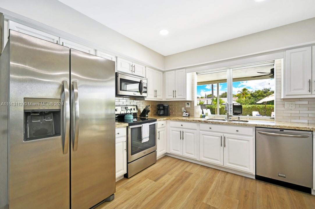 The interior designer imagined a Modern Coastal Open Floor Plan when fully renovating this Immaculate 4-bedroom 2 full bath Pool Home! Luxury vinyl planking throughout the home. Interior and Exterior of the home is freshly painted. Recessed lighting throughout the home. You will love the remodeled kitchen which boasts stainless-steel appliances, granite countertops and window overlooking the pool. Guest full bathroom is fully renovated “Modern Coastal style” with pool access. The Master bedroom Suite has a walk-in closet and fully renovated luxury spa bathroom. New HVAC/AC system, Roof replaced in 2015. The backyard Oasis is fully fenced in with a new heated large pool and travertine decking. Personal beach-sand area with custom beach fire pit. Large outdoor covered area.