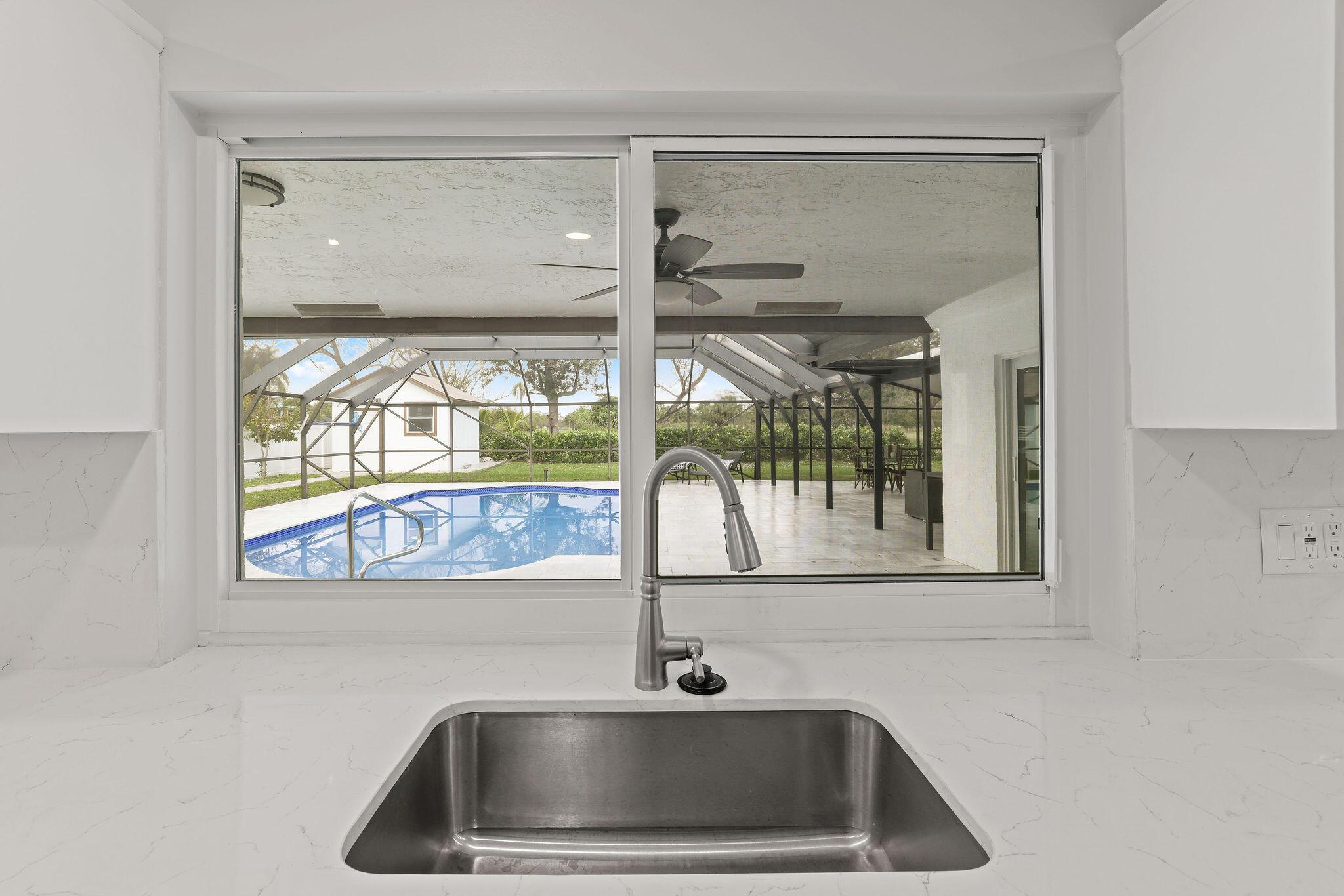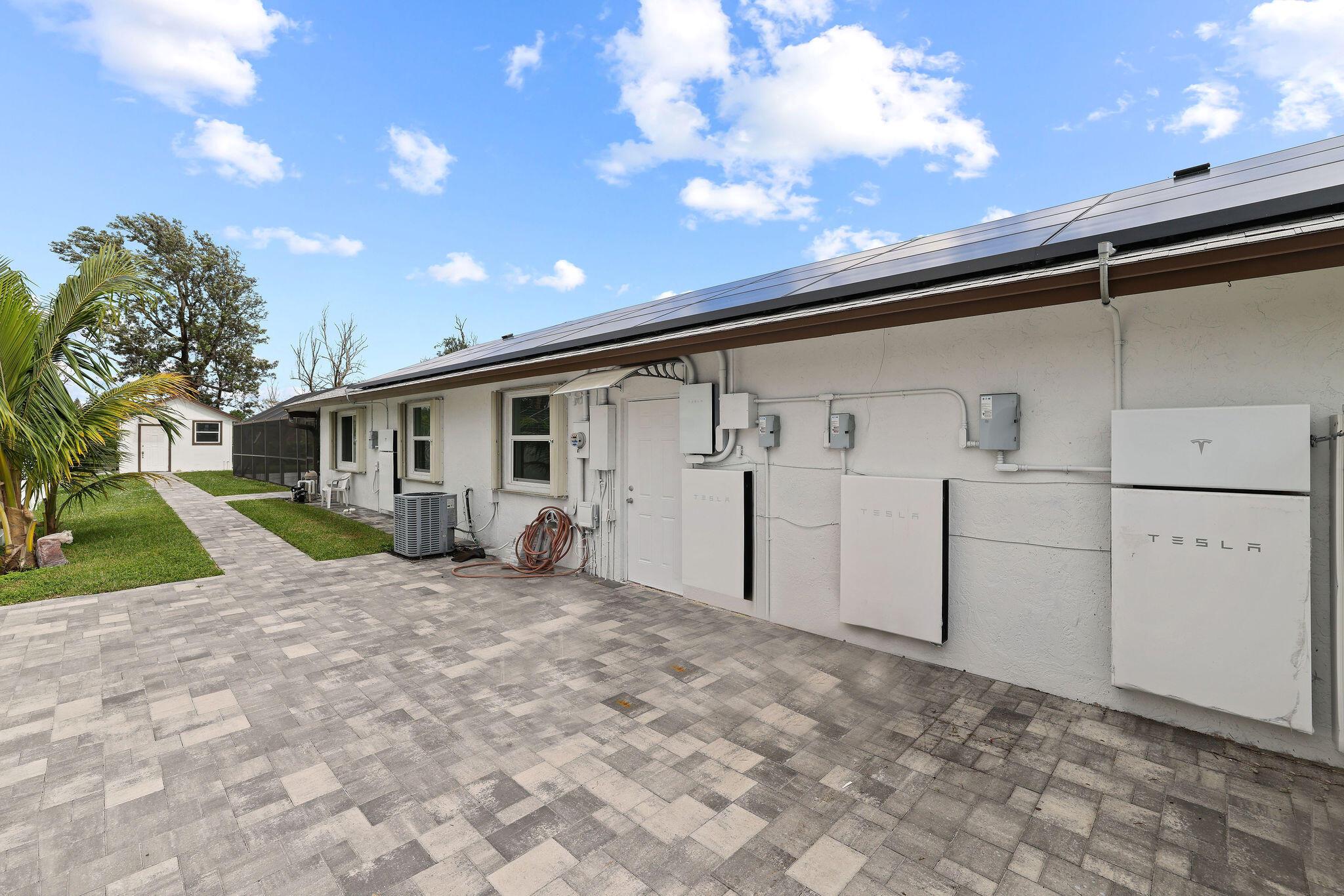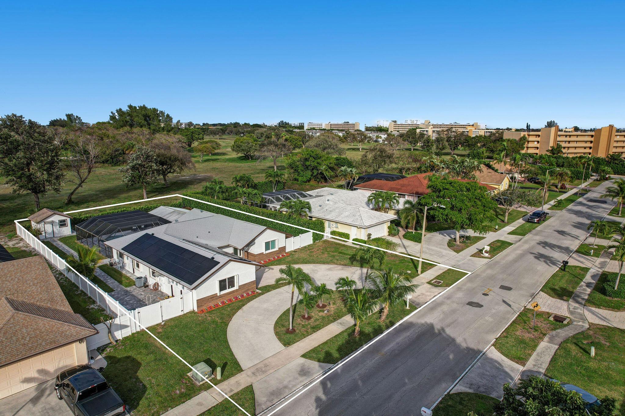 Completely Renovated! Rare Opportunity! Centrally located gem, no HOA fees, in East Boca, acreage backing Boca National Golf Course or Boca Raton Park. This single-story, 4-bed, 3-bath home features a spacious office, 2-car garage, screened patio, and pool area on a 1/3 acre lot. Ample space on both sides, plus a separate cabana office. Tesla 11KW Solar panels, 4 Power Walls, 3D architectural shingles on the roof, and impact-resistant windows and doors, including the garage. Zoned for the new Blue Lake Elementary School, only 1.6 miles to the beach. Don't miss this chance to own a convenient, stylish, and potential-filled home!