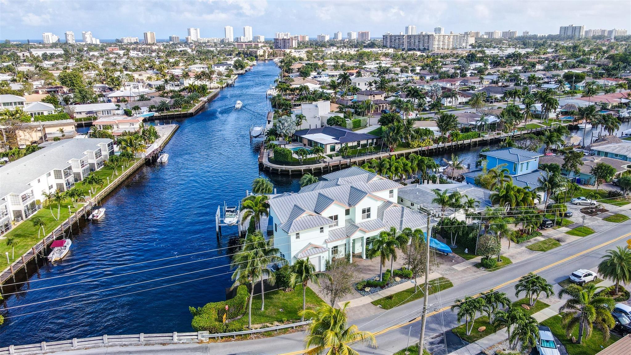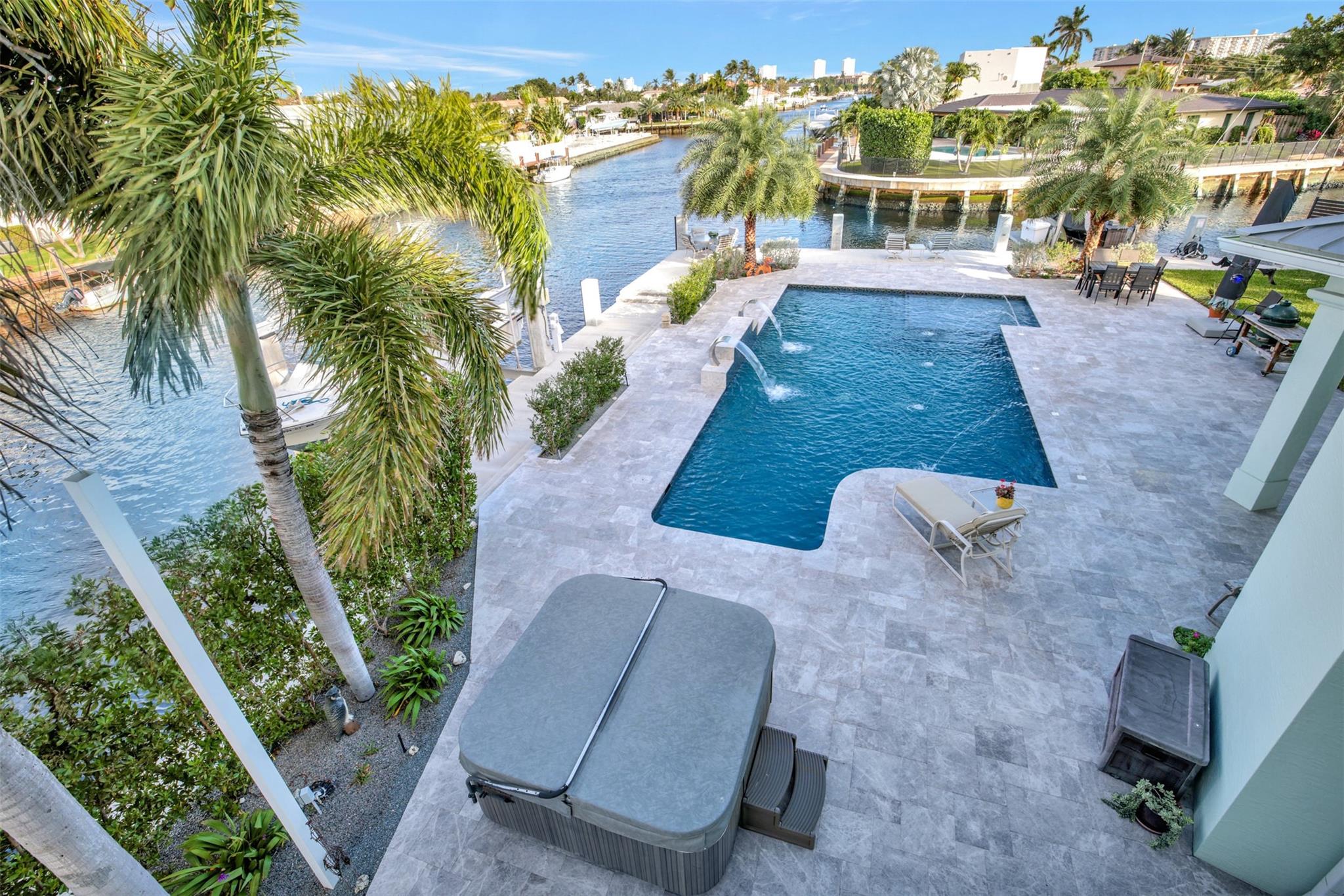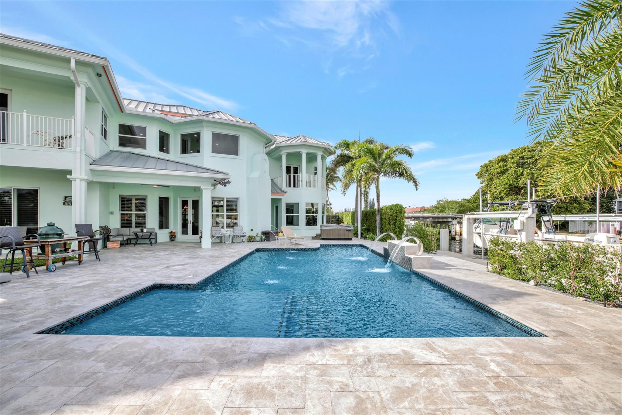 Welcome to the home of your dreams-ALL you need for family-oriented resort-style in/outdoor living in beautiful Pompano Beach,SoFlo–2-story custom built Key West/Old Florida style home-185’ of WF on wide canal,new seawall cap & batter pilings+100’of concrete dock, 16,000 lb. boat lift plus jet ski/kayak platform lift. Newly renovated pool/patio area with 2 sheer descent waterfalls & 4 deck jets,Jacuzzi. East exposure for year-round enjoyment.4 beds,4-½ baths+office+media room.2ND floor master suite enjoys a balcony overlooking pool/patio area with expansive water views;master bath his/her vanities,jetted tub,steam shower & private toilet+bidet room,large master closet. Kids/guests will fight over the bedroom large balcony overlooking pool/canal. 4-car garages with space for all cars+toys.