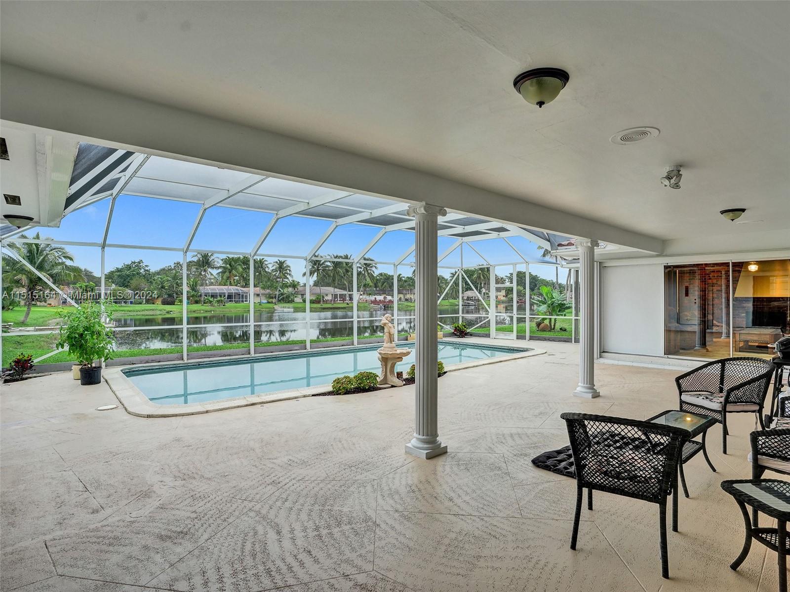 Lakeside Oasis in Royal Palm Estates - 4 Bedroom, 3 Bathroom Pool Home. Discover this elegant 4 bed, 3 bath lakeside pool home in Royal Palm Estates, showcasing stunning curb appeal and lush landscaping. Nestled on an oversized lakefront lot, it features a spacious layout with a large screened-in pool and 2 cabana baths, perfect for a large family or entertainment lovers. In addition to its numerous amenities, this home boasts a charming real wood-burning fireplace, adding a touch of warmth and luxury. Perfect for cozy evenings! The Interior awaits your personal touch. Enjoy no HOA, close to shopping, dining, and entertainment. Accordion shutters for peace of mind. It is an ideal blend of comfort and convenience.