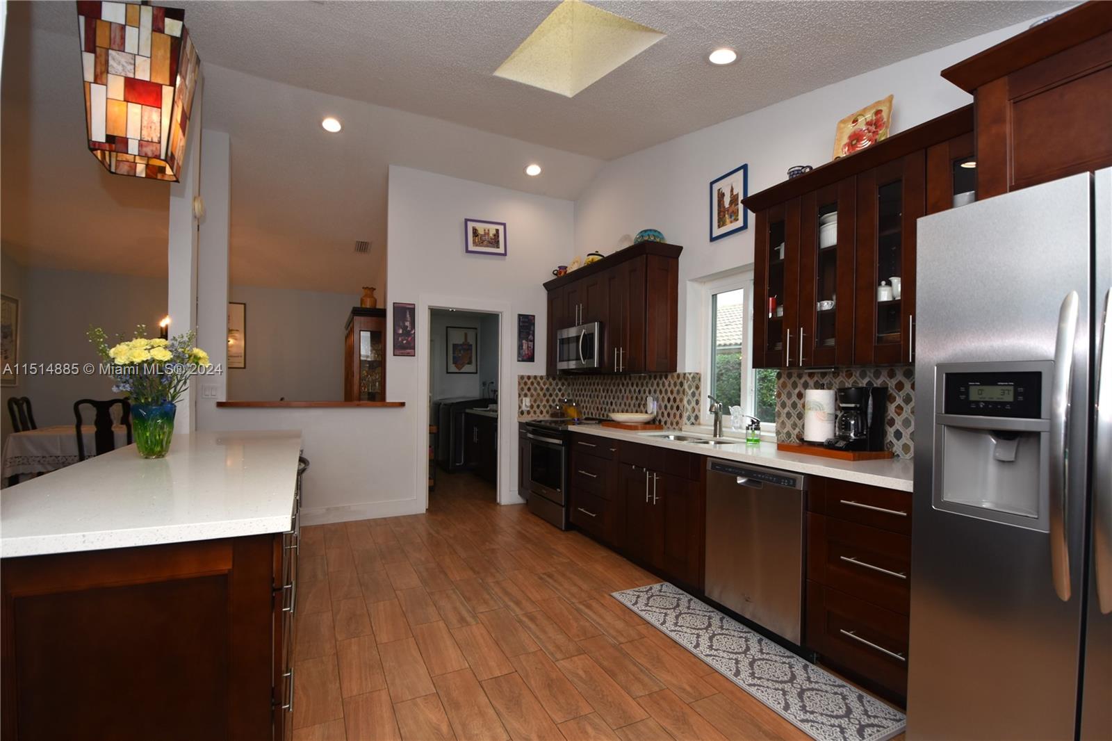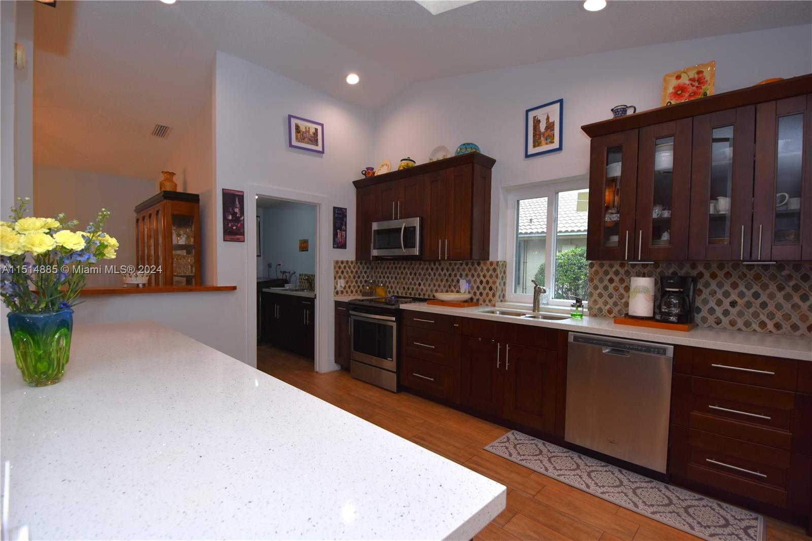 WOW FROM THE MINUTE YOU STEP INTO THIS GORGEOUS OPEN CONCEPT 4 BED, 2 BATH BEAUTIFULLY APPOINTED HOME IN CYPRESS LAKES. W/NEARLY 2700' TOTAL SQ FT THIS HOME FEATURES A CHEFS DREAM KIT W/SS APPL, ENORMOUS QUARTZ ISLAND W/MINI FRIG, CUSTOM WOOD CABINETRY. FORMAL DINING RM FOR LARGE FAMILY GATHERINGS, LIV RM W/TONS OF NATURAL LIGHT, FAMILY RM OPENING TO OUTSIDE PATIO/POOL AREA. MASTER SUITE W/SPACIOUS BEDRM, ADJOINING SITTING AREA/OFFICE, WALK IN CLOSET, MASTER BATH S/DUAL SINKS, WALK IN SHOWER, GRANITE COUNTERS, PRIVATE COURTYARD. TWO ADDTL BEDROOMS, LARGE REMODELED 2ND BATHROOM. TILE AND WOOD FLOORS. SIZEABLE LAUNDRY ROOM WITH SINK AND NEW WASHER/DRYER. ALL PLUMBING NEW THROUGHOUT HOME. 2 CG, CIRCLE DRIVEWAY, FENCED YARD, PATIO, LOW HOA – THERE IS NOTHING MISSING IN THIS HOME BUT YOU!!!