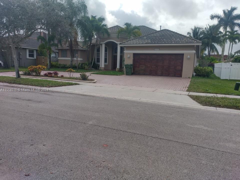 LOCATED IN PEMBROKE FALLS - THIS SINGLE STORY ELEGANT HOME HAS 4 BR, 3 BA, 1 DEN & 2 CAR GARAGE. THE HOME HAS UPDATED KITCHEN WITH GRANITE COUNTERTOPS, STAINLESS APPLIANCES & CUSTOM WOOD CABINETS. TILE FLOORING THROUGHT MOST OF THE HOME AND CARPET FLOORING IN 3 BEDROOMS. ADDITIONAL FEATURES INCLUDE HIGH CEILINGS, LARGE LIVING, DINING AND FAMILY ROOMS AND COVERED PATIO. MASTER BEDROOM FEATURES HIS & HERS WALK-IN CLOSETS, SPACIOUS MASTER BATHROOM WITH WHIRLPOOL JETTED TUB. LARGE FENCED YARD AND PATIO. HOA FEE INCLUDES INTERNET, CABLE, ALARM, 24 HR SECURITY NEW A/C UNIT INSTALLED NOV 2018. NEW CARPET IN 2 BEDROOMS. Clubhouse has heated pool, fitness center, banquet room, tennis courts. 4 guarded entrances.