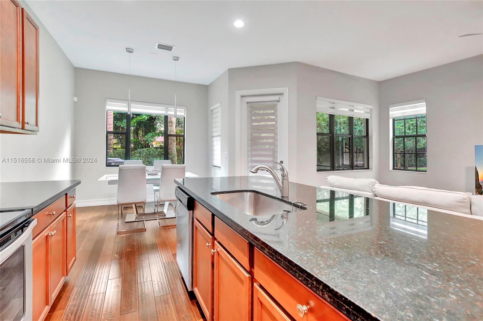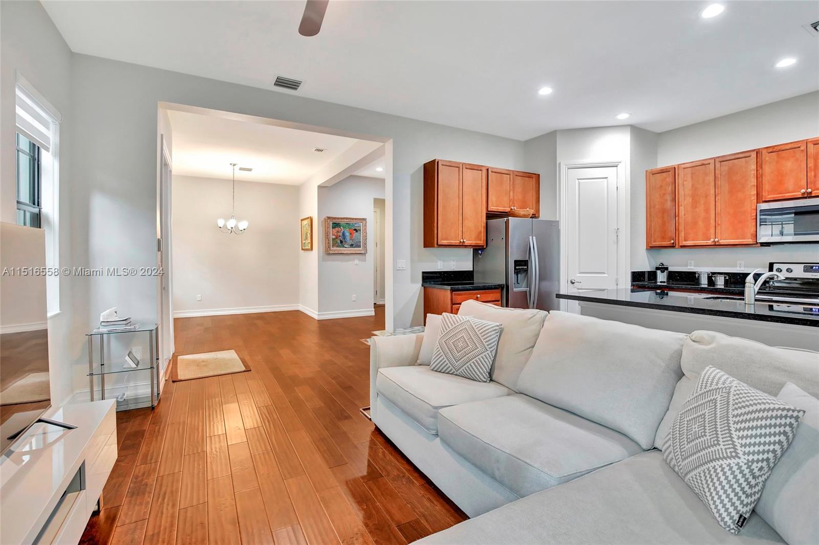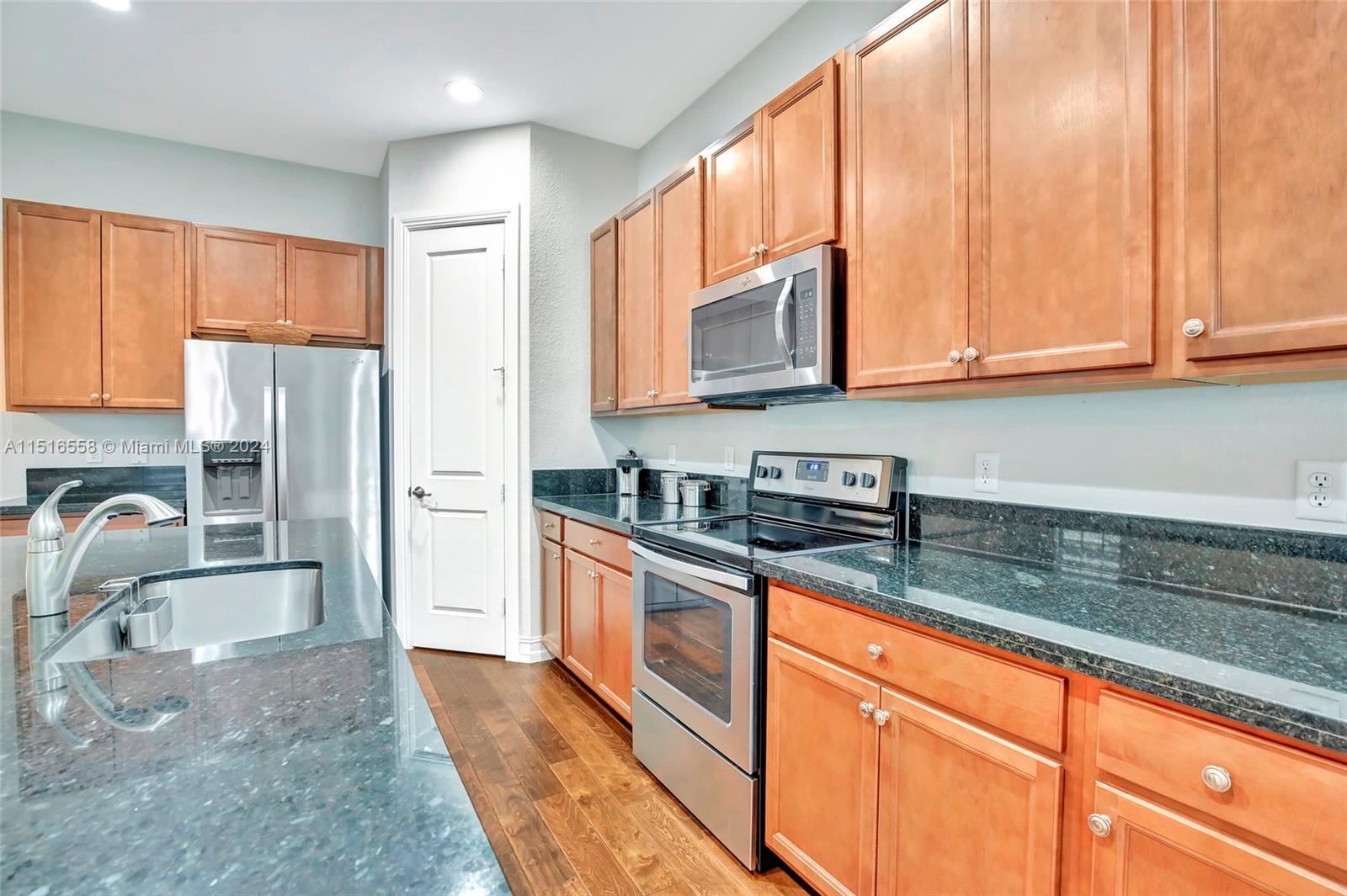 Built in 2017 this corner townhouse, in a sought-after gated community is just half a mile from the prestigious American Heritage School. Boasting 3 bedrooms, a spacious loft, and 2.5 bathrooms, real wood floors on the first floor. The primary bedroom is a retreat with two enormous walk-in closets, while the bathrooms feature dual sinks. The eat-in kitchen showcases real wood cabinets, granite counters, SS appliances, and a large walk-in pantry. Use the separate dining area for entertaining. Enjoy the serene green yard from the screened patio, with no rear neighbors. The home features a laundry room on the second level. Recent upgrades include a new water heater (12/2022) and a new AC motor (11/23). Generator Conveys.