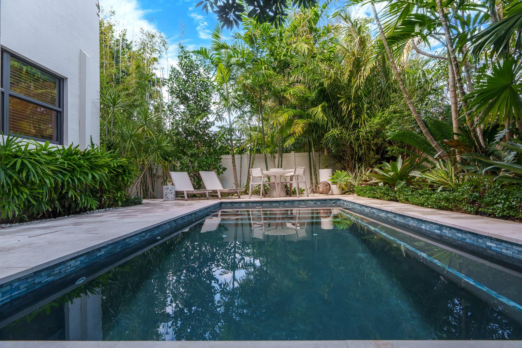It's not often properties as stunning as this come onto the market and this 3 bed/2.5 bath townhouse with its own private pool, surrounded by lush tropical landscaping, is one of those rare finds. Located close to Downtown, not far from the beach, and situated as the corner unit with it's own 2 car garage - this was new construction in 2019 when the current owner moved in, so everything is 'new' i.e the roof, AC. The property has a laundry room, a loft being used as an office/media space, and an oversized primary bedroom with a sofa and large walk-in closet. There is an abundance of storage and closets throughout. The TVs are staying, and some furniture is negotiable. Current appraisal for $980,000 (dated 1/17/24) attached to this listing.