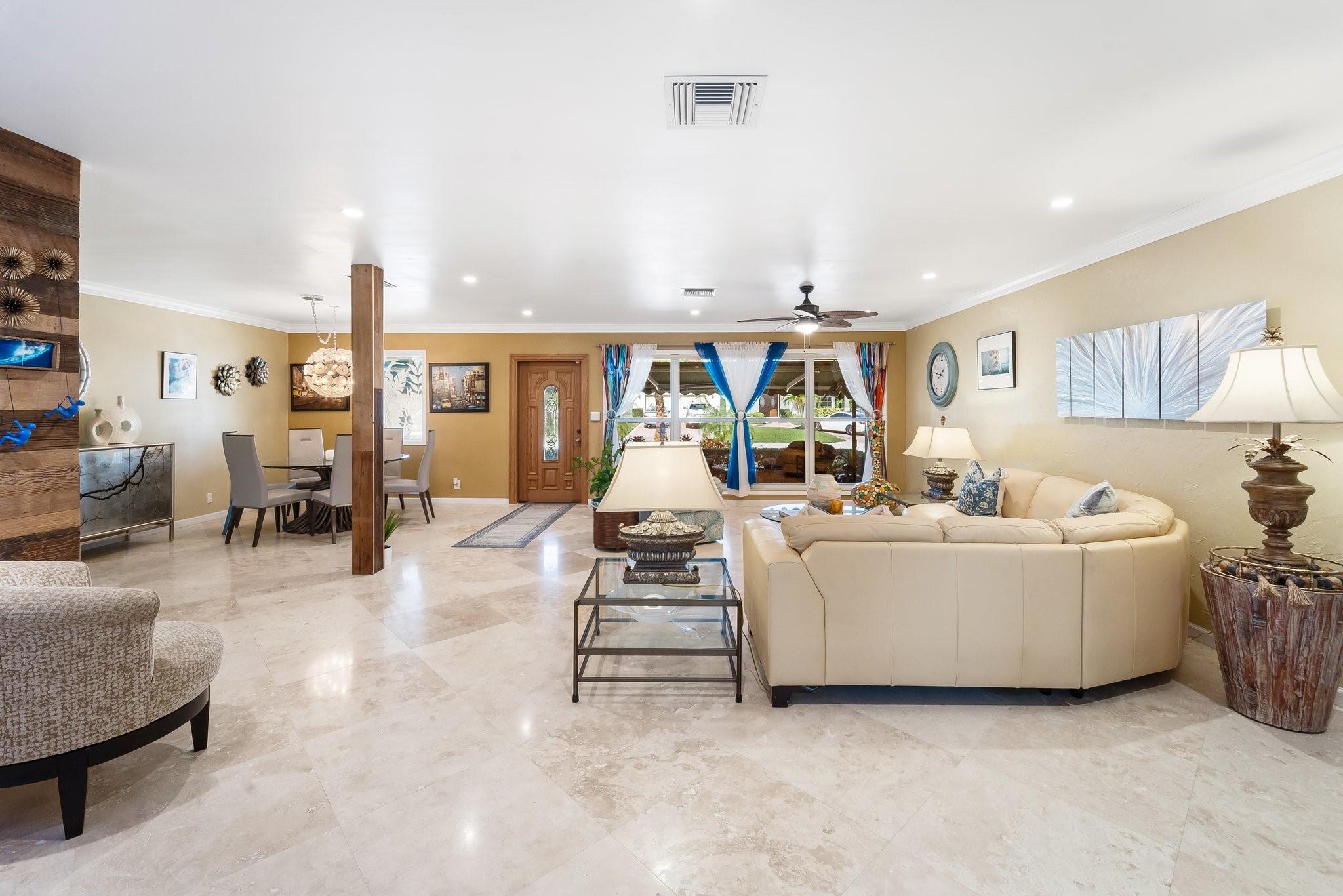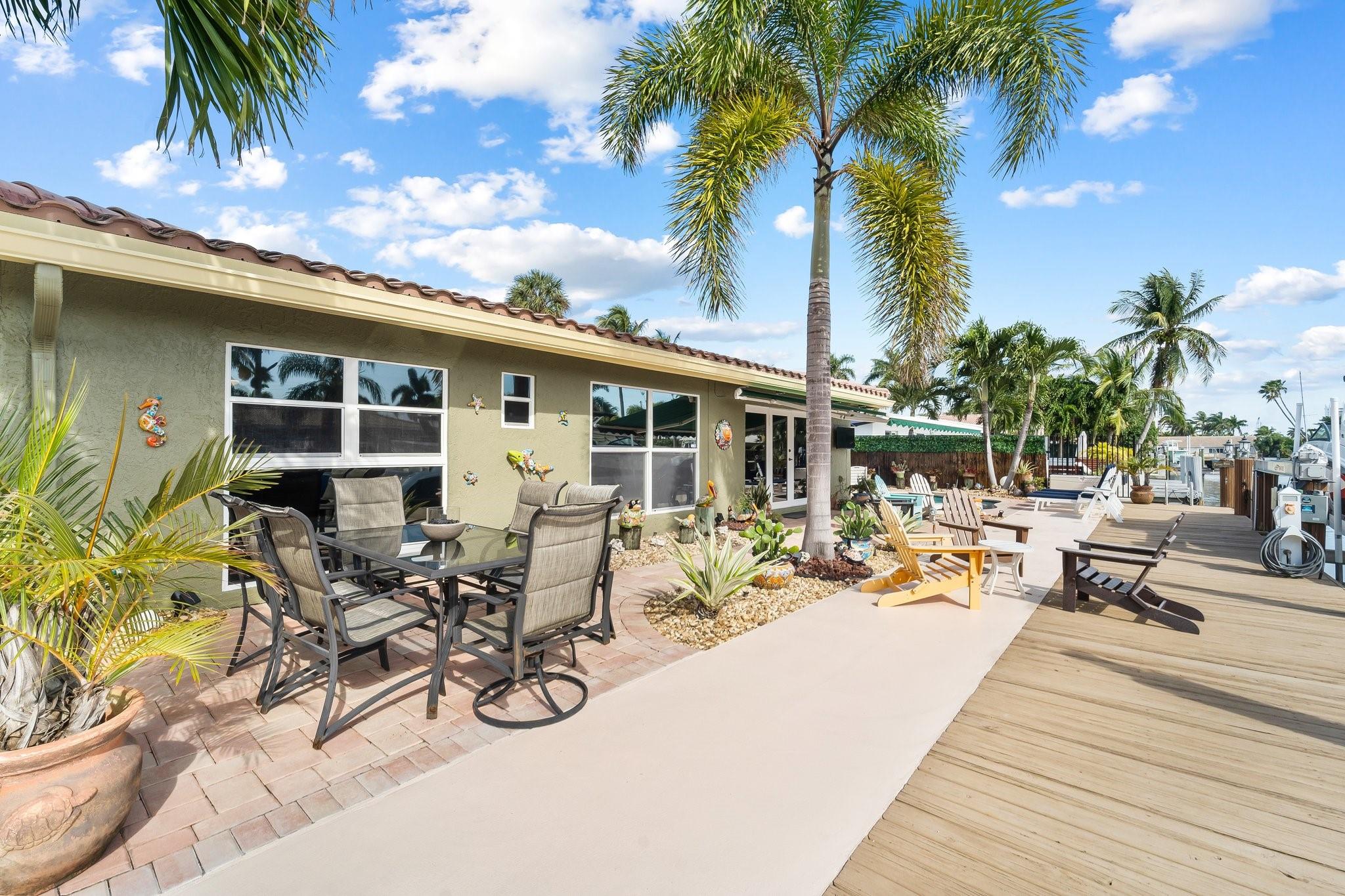 Boaters - Deepwater-No fixed bridges! 2408 sq. ft. 3/2 renovated decorator pool home with 75' on the water. Seawall reinforced with 2 feet of additional height and width. Shows beautifully with remodeled bakers kitchen, dining, living room, breakfast, bathrooms, bedrooms and entertainment areas. Reverse osmosis water purification system. Natural gas inside and out.. Full Impact glass and tile roof. Circular paver driveway with additional parking. Newer dock with reinforced pylons and 13k lb boat lift. Heated salt water pool on the patio with retractable sun shades front and back. 22kw generator and additional storage sheds. Epoxy floor in the garage. Click on the the drone video of the area.