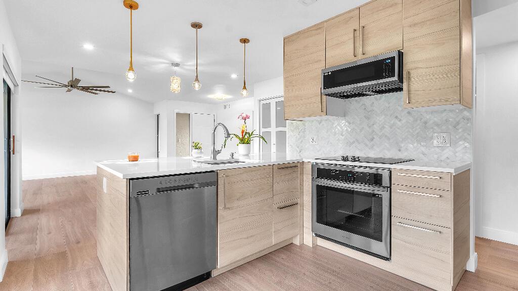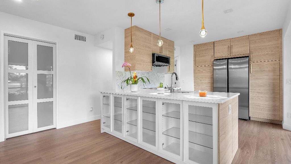 Modern Oasis in Boca Raton, Florida Welcome to your New Sanctuary of modern elegance! This stunning Boca Raton first floor, 2/2 townhouse contemporary living, thoughtfully designed to elevate your lifestyle. Luxurious Spa-Like Main Bathroom, Japanese soaking tub/wet room shower. The heart of this home is a modern kitchen adorned with new appliances and custom quartz countertop, marble backsplash, floor to ceiling pantries, roll-out storage. Very large great room with soaring ceilings, statement worthy fan and huge sliding glass doors creating an open and airy atmosphere. Second Bed/bathroom with rain shower, double vanity, high end faucets, curated for comfort and style. Extra storage 1 Car Garage & garden backyard. Next to Boca Raton Swim and Tennis for Country Club lifestyle.