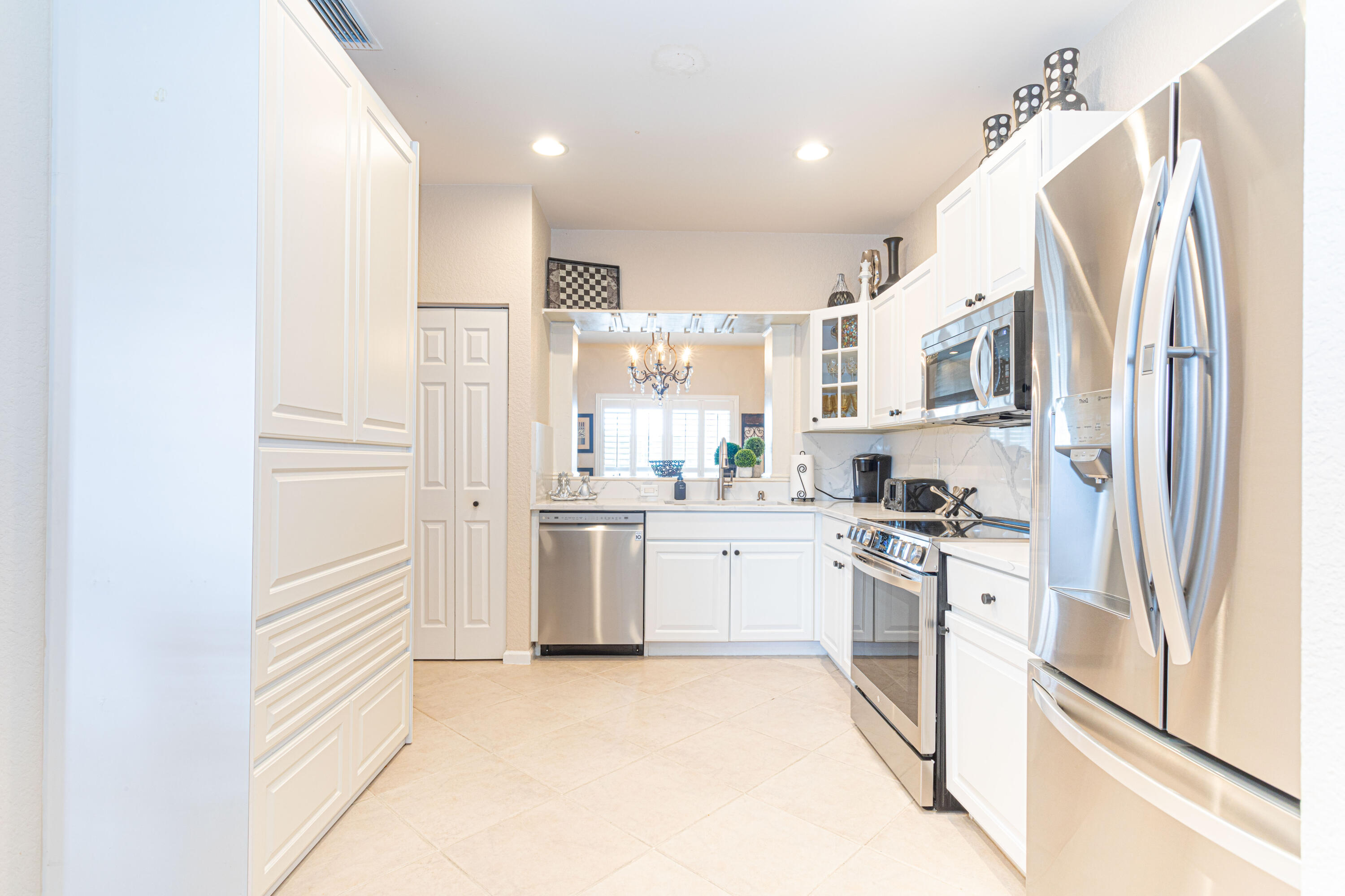 Immerse yourself in the tranquility of stunning long lake views from your patio. Appreciate the kitchen's beauty with granite tops and an inviting eat-in counter. This home radiates charm and personality, sparing no expense to provide a perfect blend of comfort in this 3-bedroom, 2.5-bath town-home with impact windows. Indulge in a gorgeous kitchen boasting granite countertops, a spacious eat-in counter, glass-top stove, built-in microwave, sink/faucet, and disposal. Beautiful ceiling fans and light fixtures enhance the entire space, while knockdown walls add a touch of sophistication. Relax on your screened patio, absorbing the breathtaking long lake views and tropical settings. This community ensures a lifetime of enjoyment, located in an A-rated school district and proximity to various