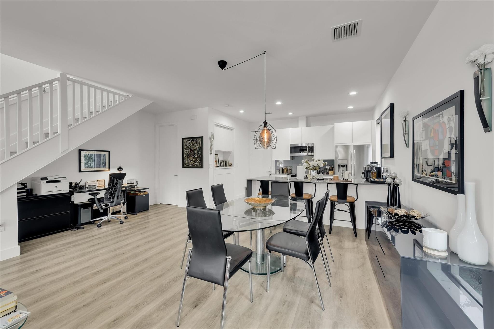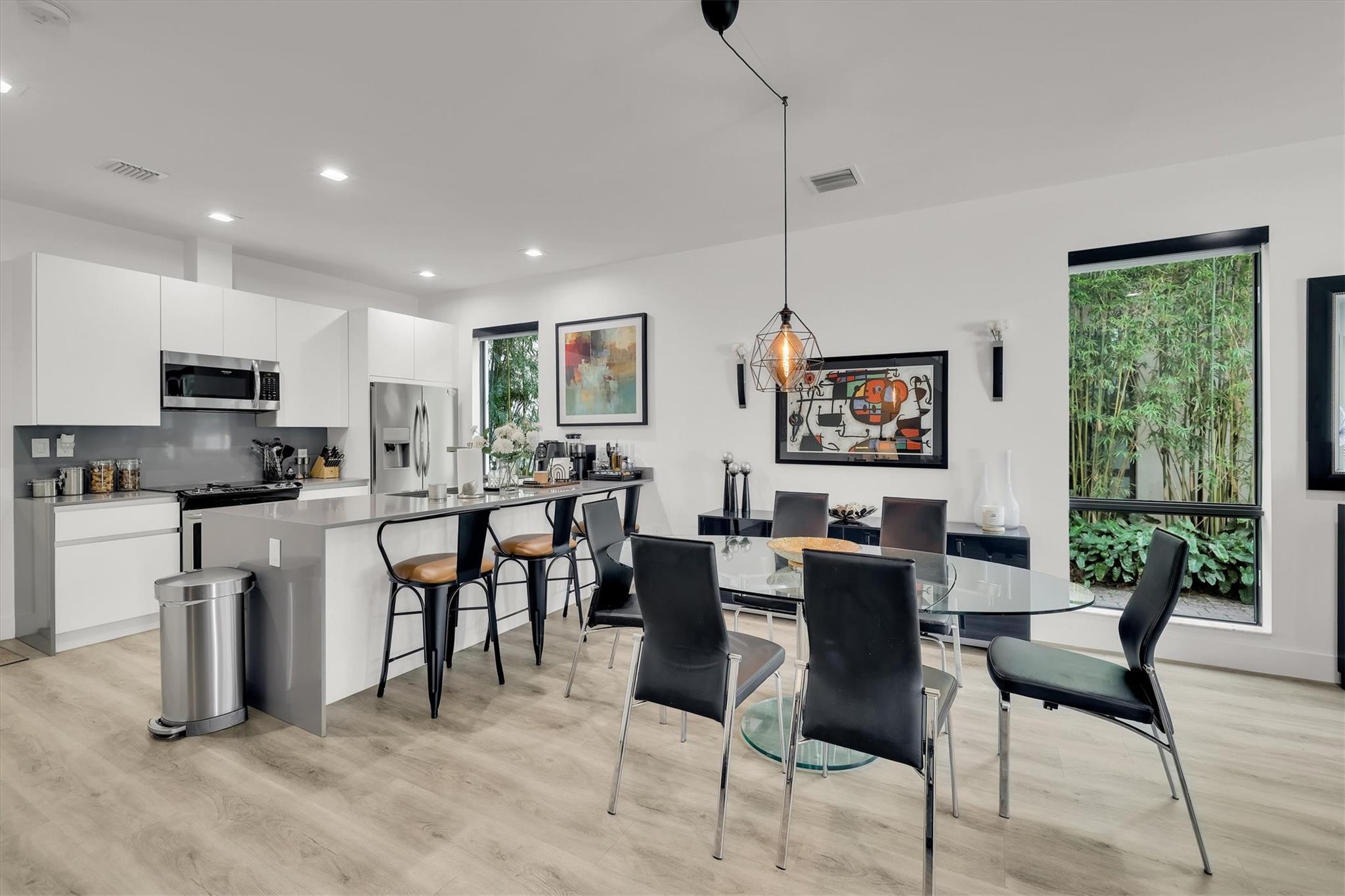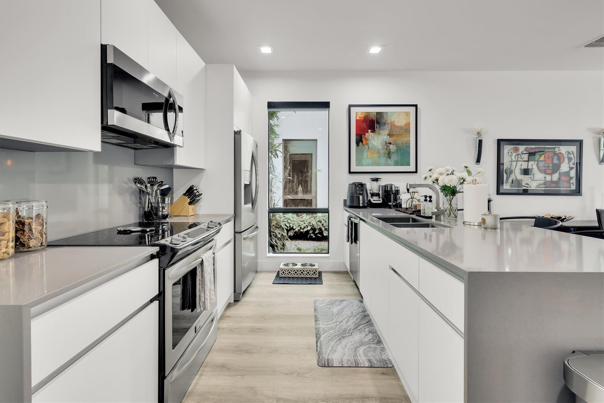 Impeccable & stunning best describe this corner unit townhome located in one of the most desirable neighborhoods in Ft. Lauderdale. It sits just minutes away from the beach & the popular shopping district along Las Olas Blvd. The kitchen boasts stainless steel appliances, solid surface countertops, sleek cabinetry & a large dine-in island. The open floor plan & volume ceilings maximize the space. The second floor is comprised of 3 bedrooms & a laundry room. The Primary bedroom includes its own rooftop private balcony overlooking the beautiful yard and the Guest bedroom has been converted to a massive custom California Closet with desk space perfect for a second work from home space. There is also plenty of room for parking with a two-car garage & driveway space for another two cars.