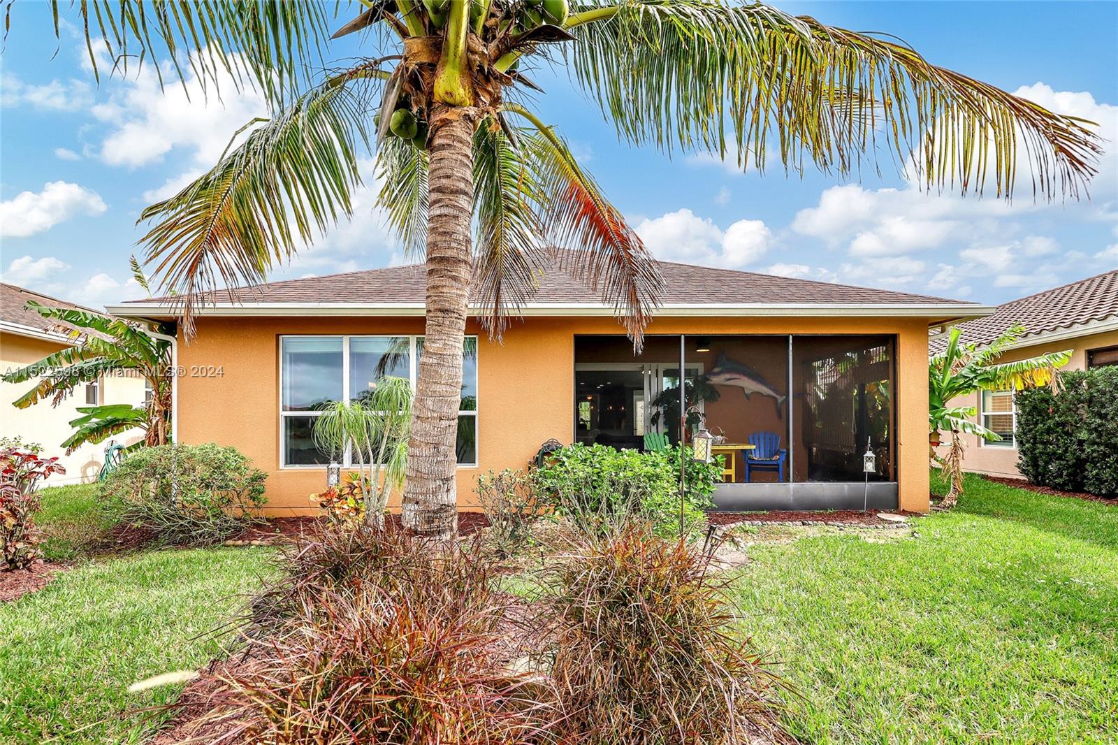 Lucky two; two bedrooms, two full bathrooms, two car garage plus a Den and center lake view. Tastefully designed kitchen featuring granite countertops, tall cabinets and large island with a sink, enhancing the functionality of the space. Black and silver appliances contribute to the modern aesthetics of the kitchen. Tastefully designed living room offering a serene and comfortable atmosphere. The flooring below consists of elegant tiles, further complimenting the room's interior design. Nestled in Port St. Lucie, Vitalia at Tradition presents a prime location; offering convenient access to essential amenities and local attractions. Residents benefit from the proximity of major retailers, healthcare facilities, abundance of Outdoor Spaces, restaurants, shops, and bars.