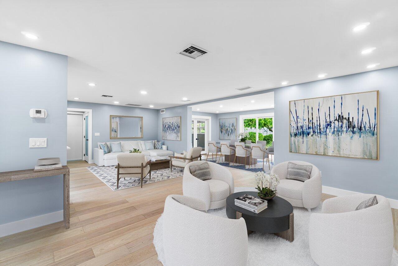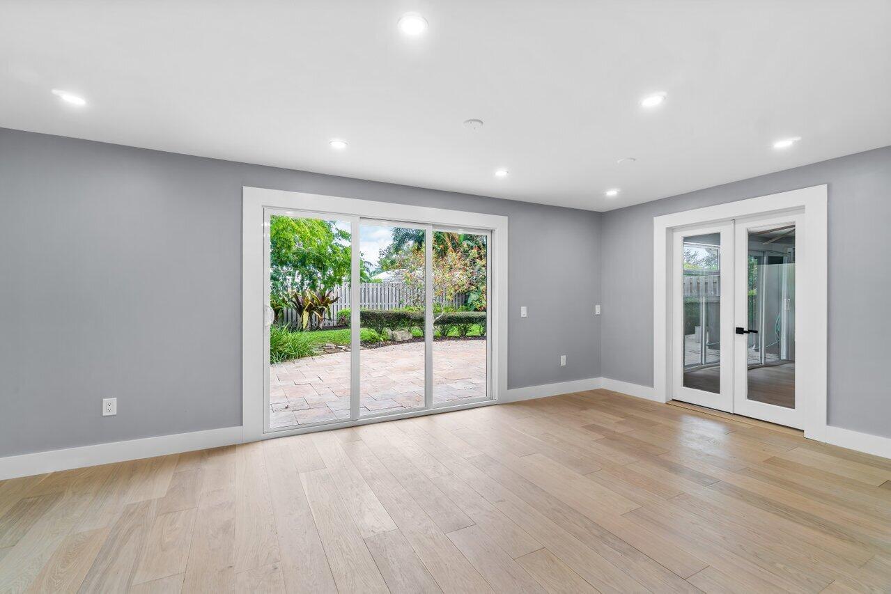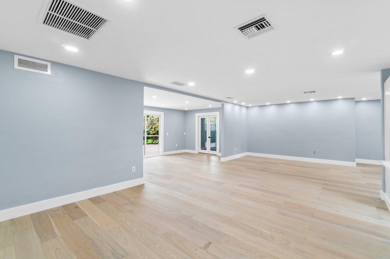 BOCA SQUARE GEM! One story ranch home with all NEW kitchen, shaker style wood cabinets, quartz countertops, stainless-steel appliances, double wall ovens, walk-in pantry and breakfast island. Features impact glass windows and sliding glass door, elegant wood floors in a light and bright open-concept design. Includes ALL NEW insulations, high hats, vents, interior doors, door hardware, washer, water heater and gutters. Internal laundry room for convenience. Spacious fenced in backyard, ideal for pool or lush garden. Near top rated public and private schools, beaches, shopping, entertainment. Prime location in East Boca Raton. Move in ready.