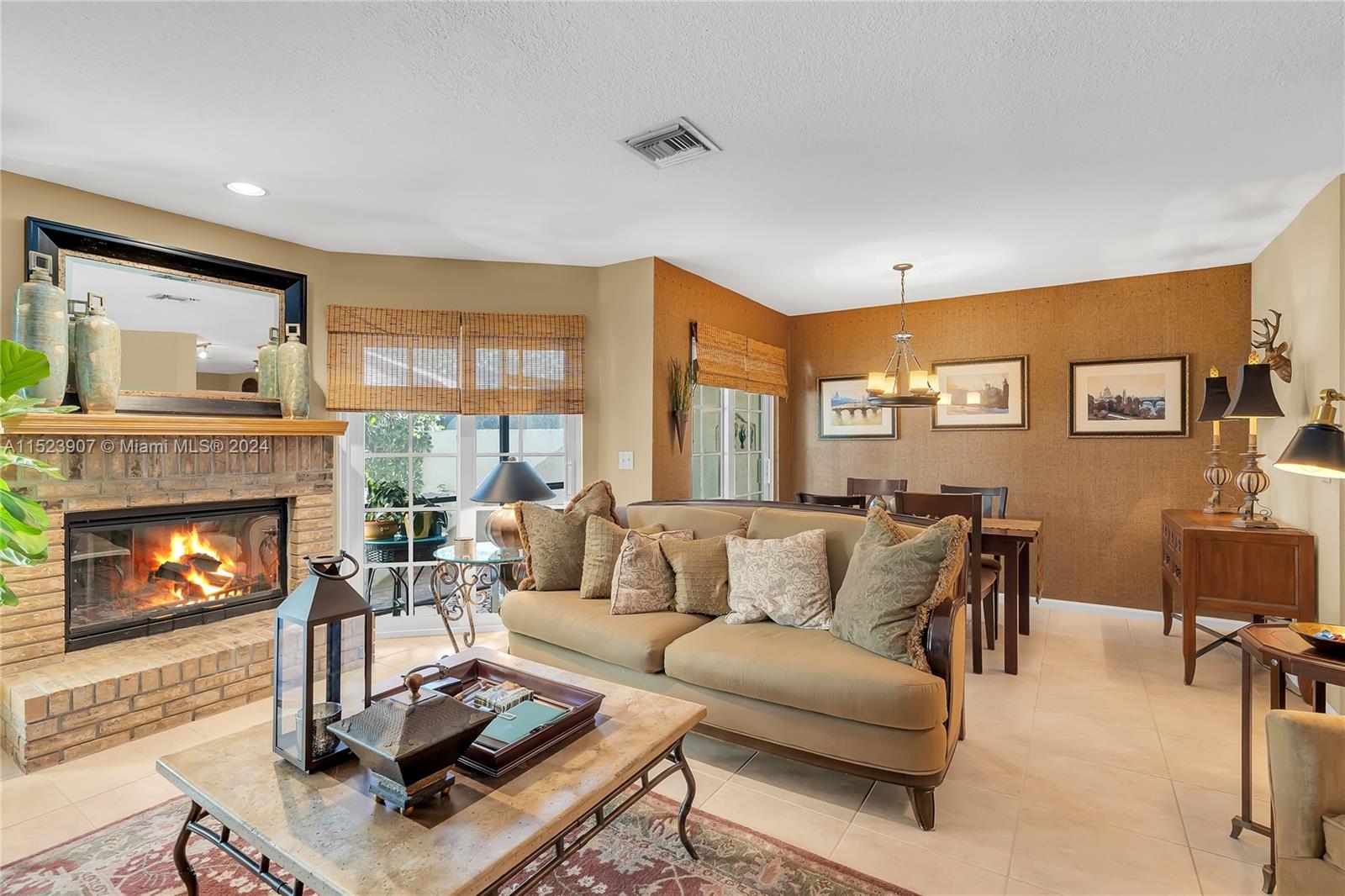 Beautiful 3/2.5 townhome on the water in the desirable Eagles Nest community. IMPACT WINDOWS THROUGHOUT THE HOME, INCLUDING THE GARAGE DOOR. Large eat-in kitchen with pantry and stainless appliances. 1/2 bath downstairs. Designated laundry room, one car garage w/finished/epoxy flooring. Working fireplace in the living/dining area. Oversized primary bedroom w/dual closets and ensuite bath w/walk-in shower with frameless doors and a large linen closet. 2nd bath is shower/tub combo. Sisal carpeting upstairs with porcelain tile downstairs. In-ground lighting along front walkway, paver patio w/privacy hedge outside the screened patio. Roof 7 years, A/C 6 years, Water Heater 1 year, Wash/Dryer 4-5 years. Assessment has been paid in full by seller. HOA requires 25% down.