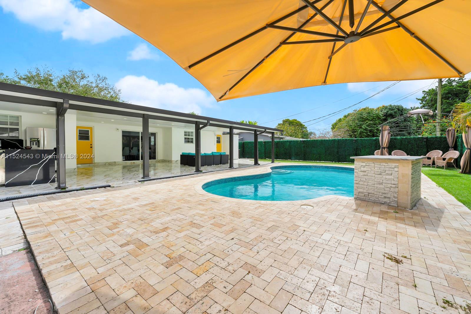 Introducing a stunning and recently updated one-story home boasting 3 bedrooms, 2 bathrooms, with an updated pool. This charming residence features brand new appliances through the home, new impact windows and doors, new central AC unit, Roof, driveway, and backyard terrace. The home perfect for both relaxation and entertaining. With its inviting pool and updated features, this home presents an ideal opportunity for comfortable living. Actual sqft of the home is 1395.