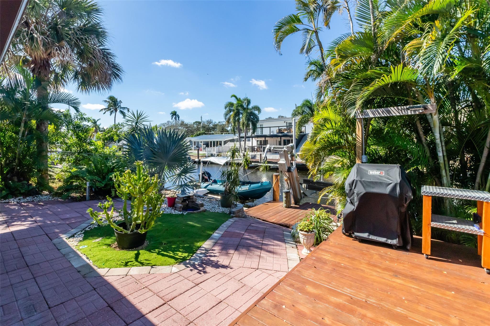 60 ft of Waterfront- Ocean access, No Fixed Bridges! 3 Bed 2 Bath Midcentury home with vaulted ceilings- Lots of natural light from windows across the front & back of open living areas. Updated Open Kitchen w/ Breakfast Bar. 2 Boatlifts (one for 17,000 lbs) & Newer Deck & Dock. Relaxing Screened porch Outdoor entertaining with a large deck overlooking tropical yard & the water. Fully Fenced, & Private. Outdoor Shower. Carport, plus utility room & 2 sheds. Enjoy scenic rides down the New River to the Intracoastal, Ocean or just going out to dinner! Shady Banks is a unique neighborhood w/ 2 parks with Volleyball, Tennis, Nature trails- One way in/out & surrounded by the New River. Minutes to Downtown, Las Olas & the Beach. Best Price Waterfront East Side of Ft Lauderdale-w/ no fixed bridges